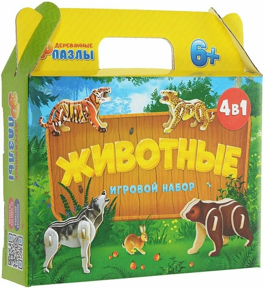 Комплектация: 4 деревянных 3D пазла, коробка.