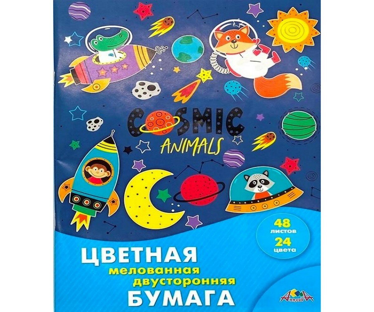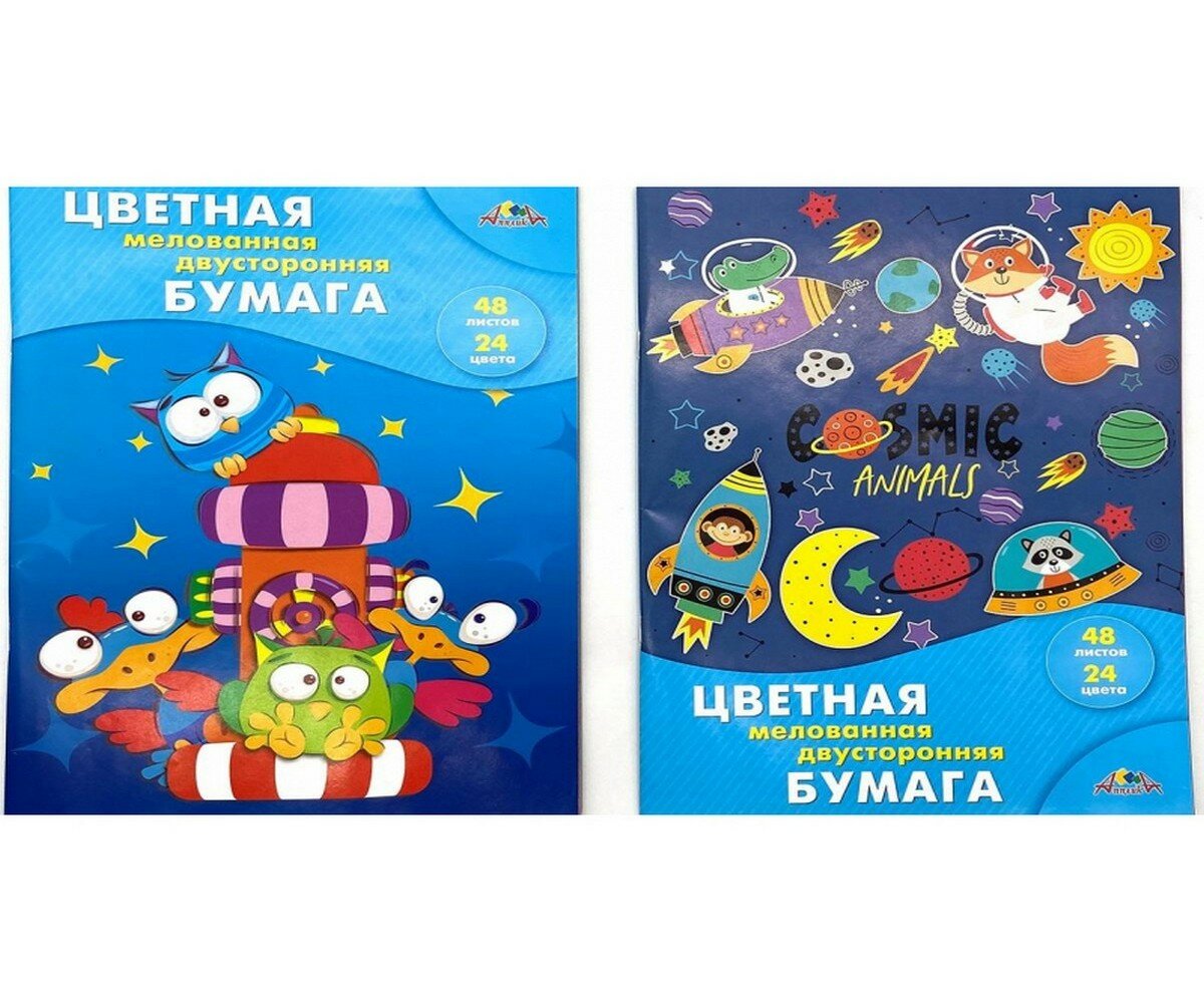 Бумага цветная мелованная двухсторонняя 48 листов 24 цвета Веселые друзья (С2816-41) АппликА