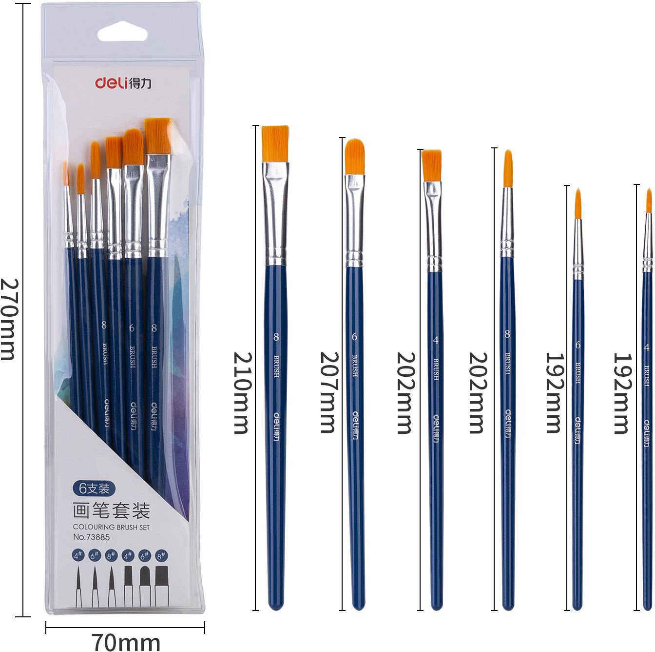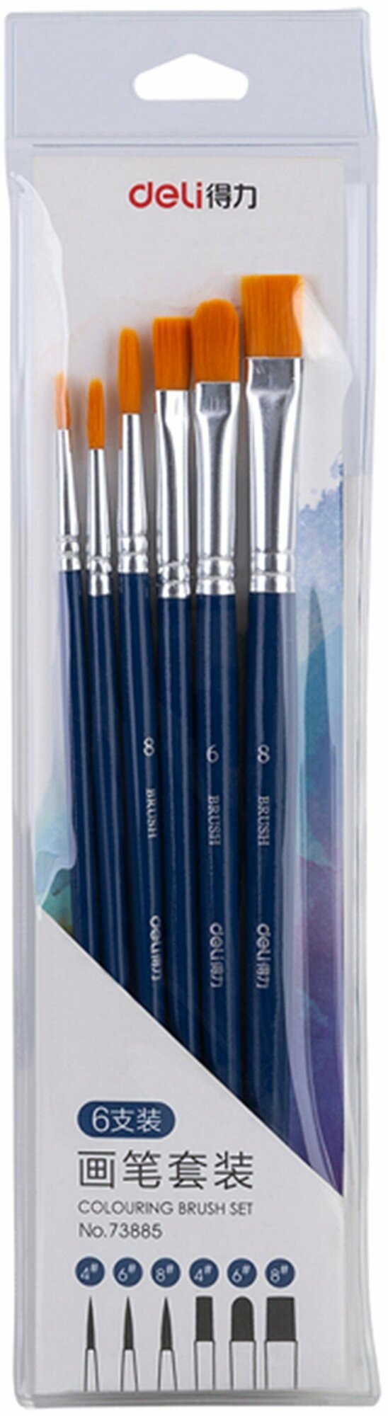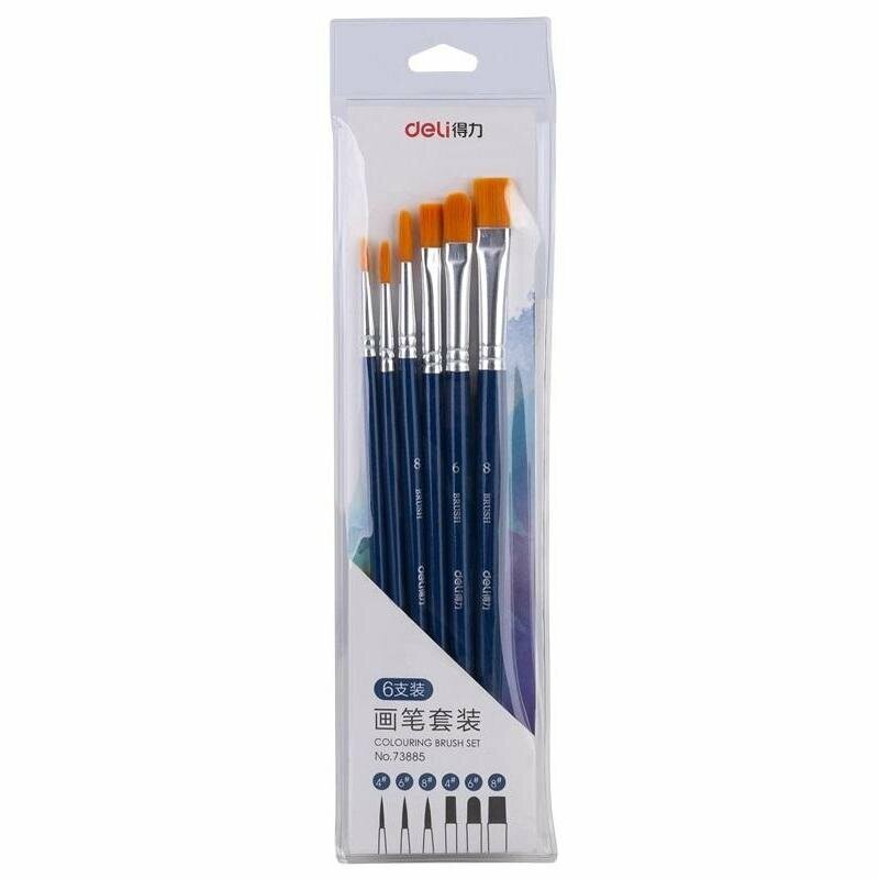 Количество кистей в наборе: 6 кистей ( 3 плоские, 3 круглые).