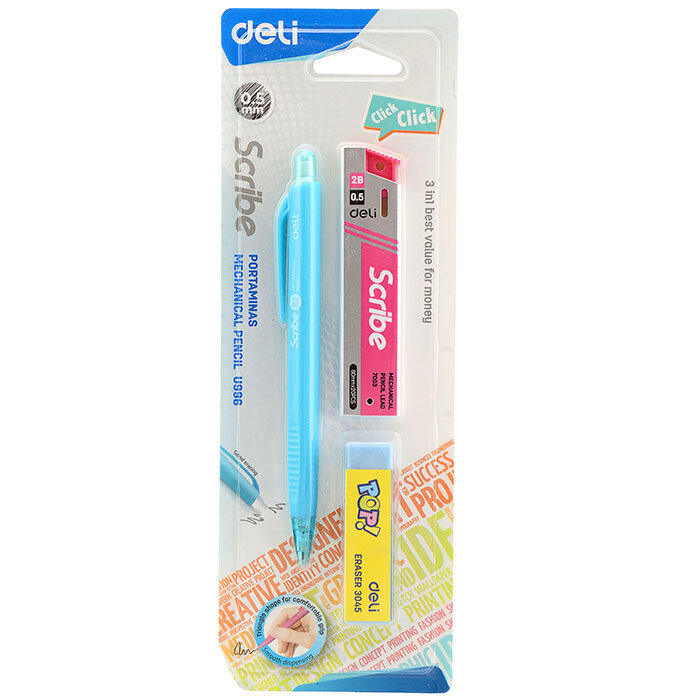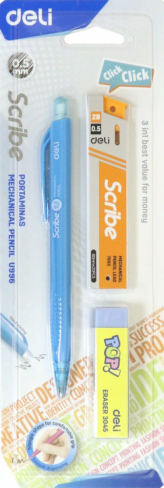Набор механический карадаш (0.5 мм) + ластик + грифель (CU996) DELI