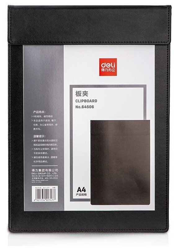 Папка-планшет черная с магнитной крышкой Deli формата А4.