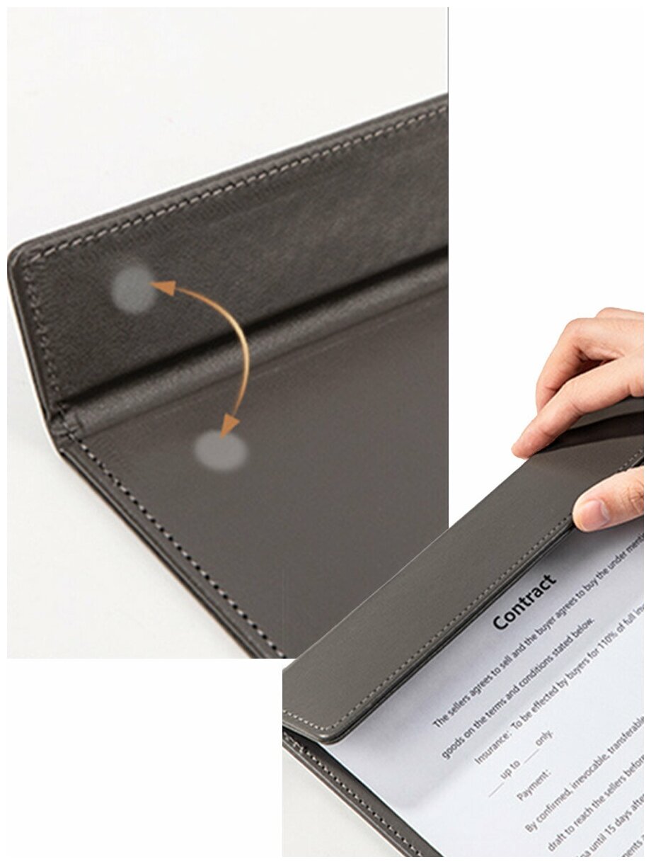Вертикальная папка из искусственной кожи премиум-класса придаст стильный и профессиональный вид вашему деловому интервью или презентации.