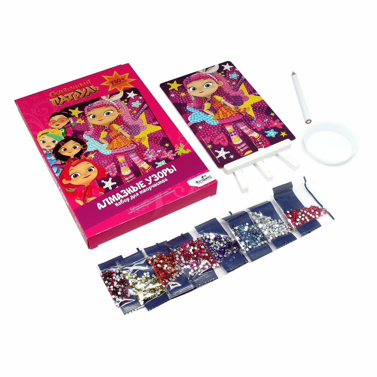 Волшебница Алиса из мультфильма "Сказочный патруль" приглашает всех маленьких подружек отправиться в сказочную страну ослепительного творчества! Сними защитный слой с картинки-основы, выложи ее блестящими стразами по номеру и цвету с помощью карандаша-стилуса, и ты увидишь, как любимая героиня преобразится и засверкает яркими красками! Твори, веселись и удивляй!