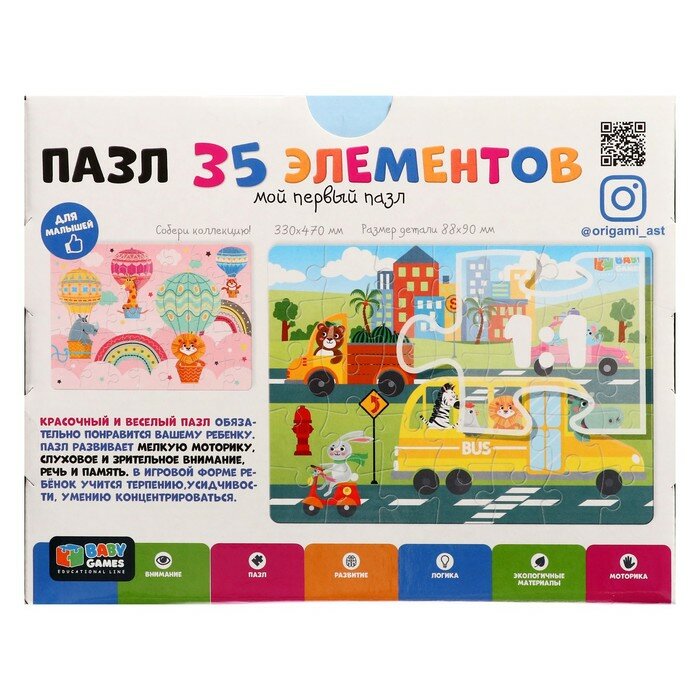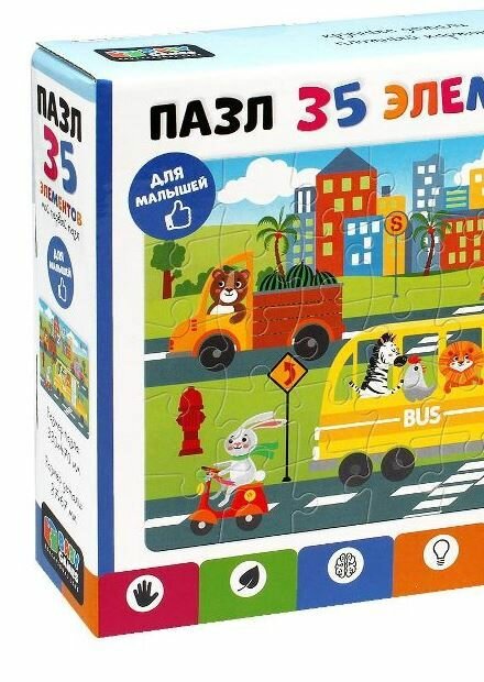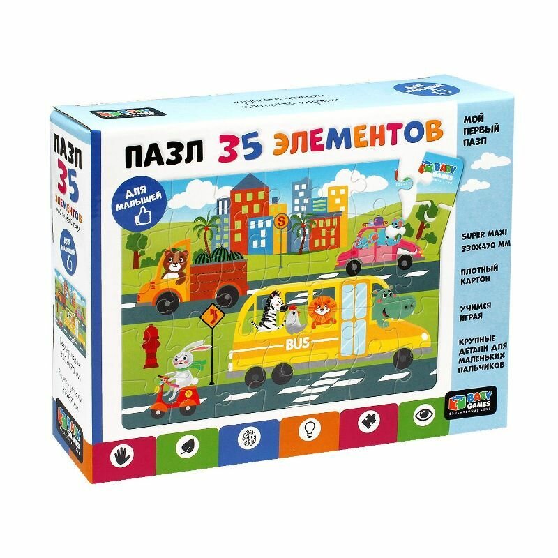 Большой пазл 35 элементов "За рулём" Baby Games понравится любому ребенку, а сборка яркой картинки принесет радость не только малышам, но и их родителям. Крупные детали пазла удобно ложатся даже в самую маленькую ручку! Соберите всю коллекцию новых пазлов!