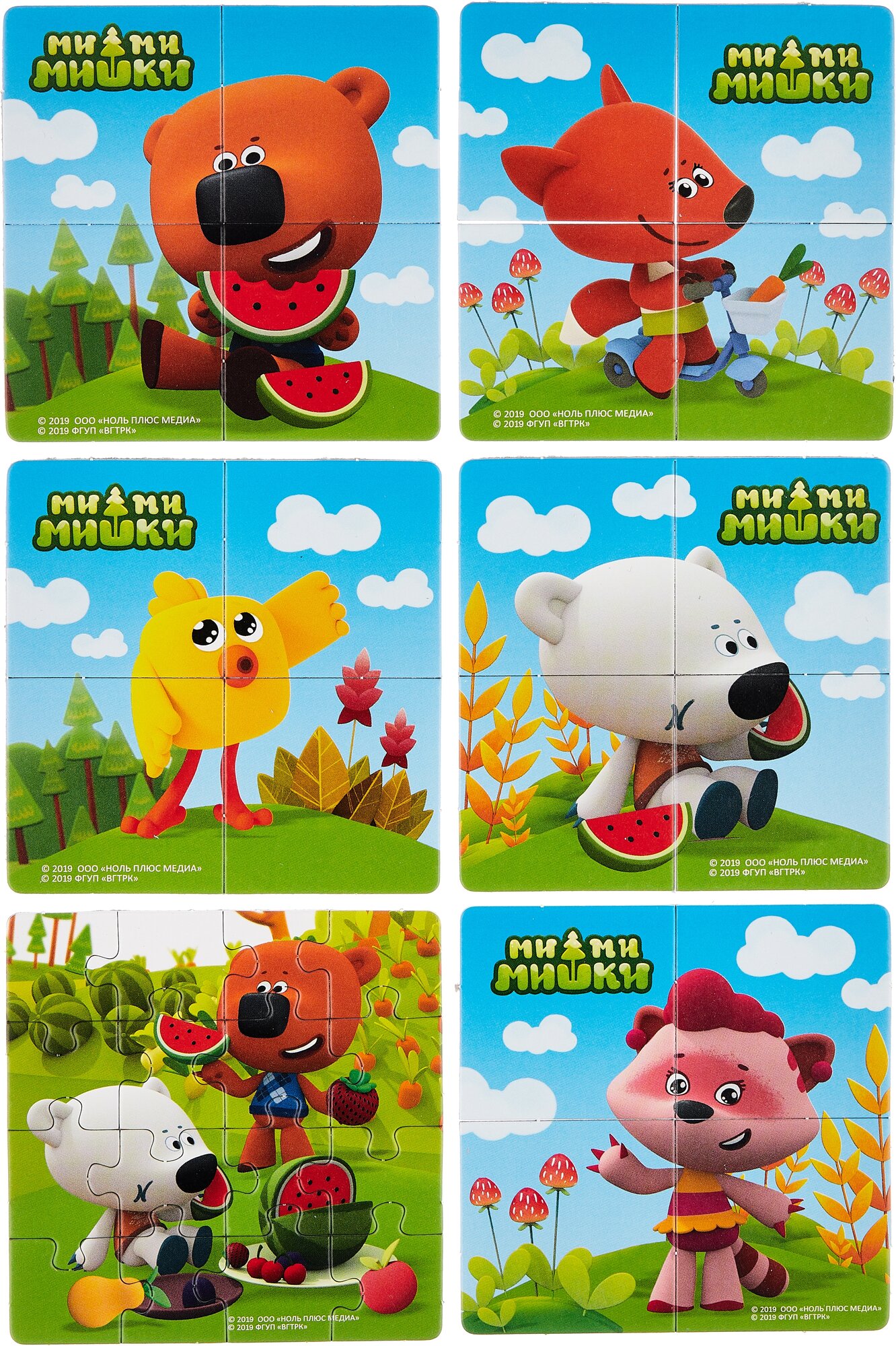 Настольная игра "Карусель-лото" "Веселый урожай" с любимыми персонажами мультфильма Ми-Ми-Мишки - это отличное занятие для детей и их родителей. Правила игры просты: соберите игровое поле из четырех элементов.