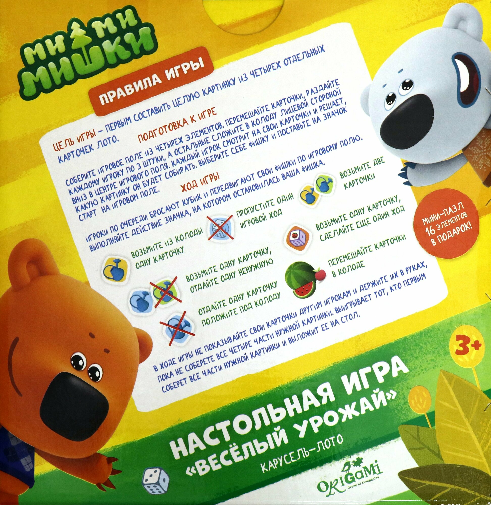 Сервис сравнения цен СкидкаГИД предлагает сравнить цены на товар «Карусель-лото + Пазл-16 "МиМиМишки. Веселый урожай" (05142) ОРИГАМИ»