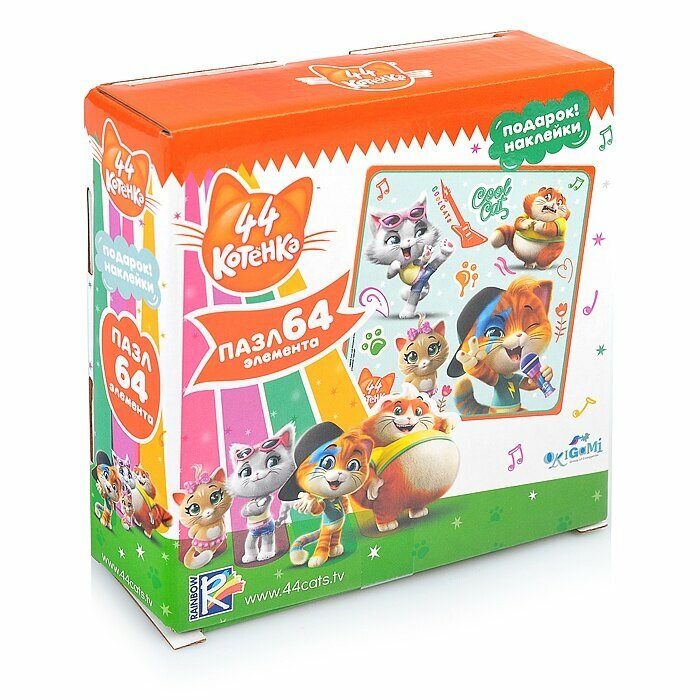 Пазл 64 элемента, серии 44Cats, понравится любому ребенку, а сборка яркой картинки принесет радость не только малышам, но и их родителям. Соберите всю коллекцию новых пазлов!