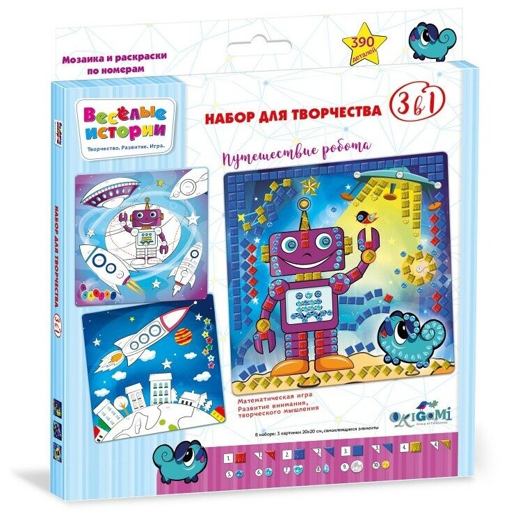 Веселые истории. Мозаика 3 в 1 "Путешествие робота" (390 деталей) (05127) ОРИГАМИ