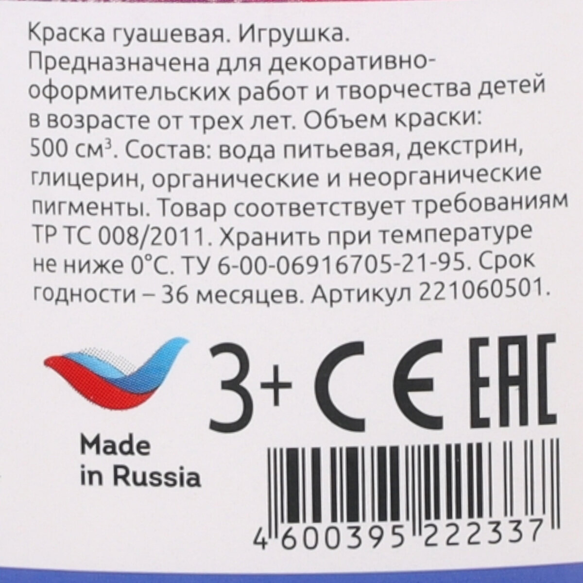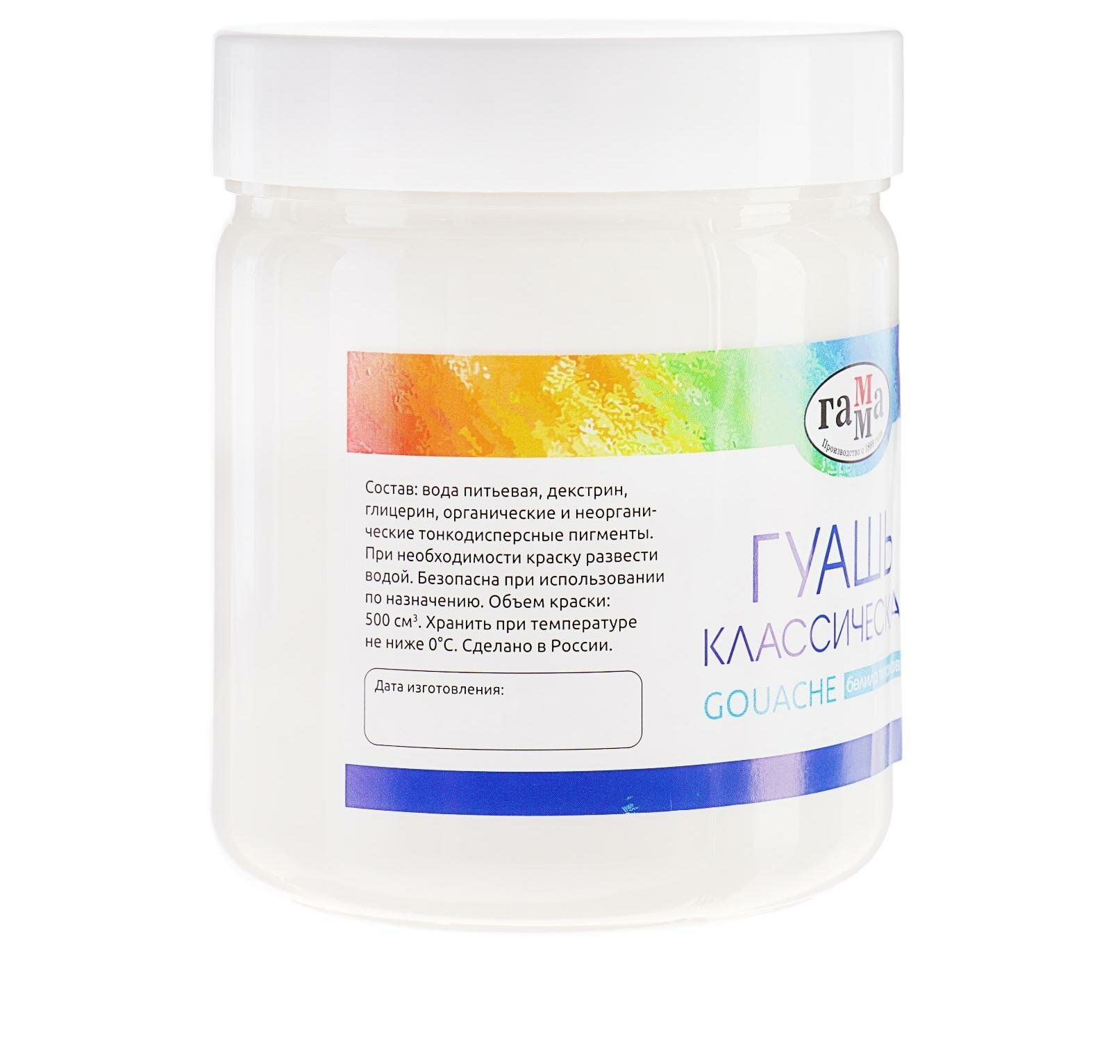 Гуашь классическая 500мл белила титановые 221060501 ГАММА