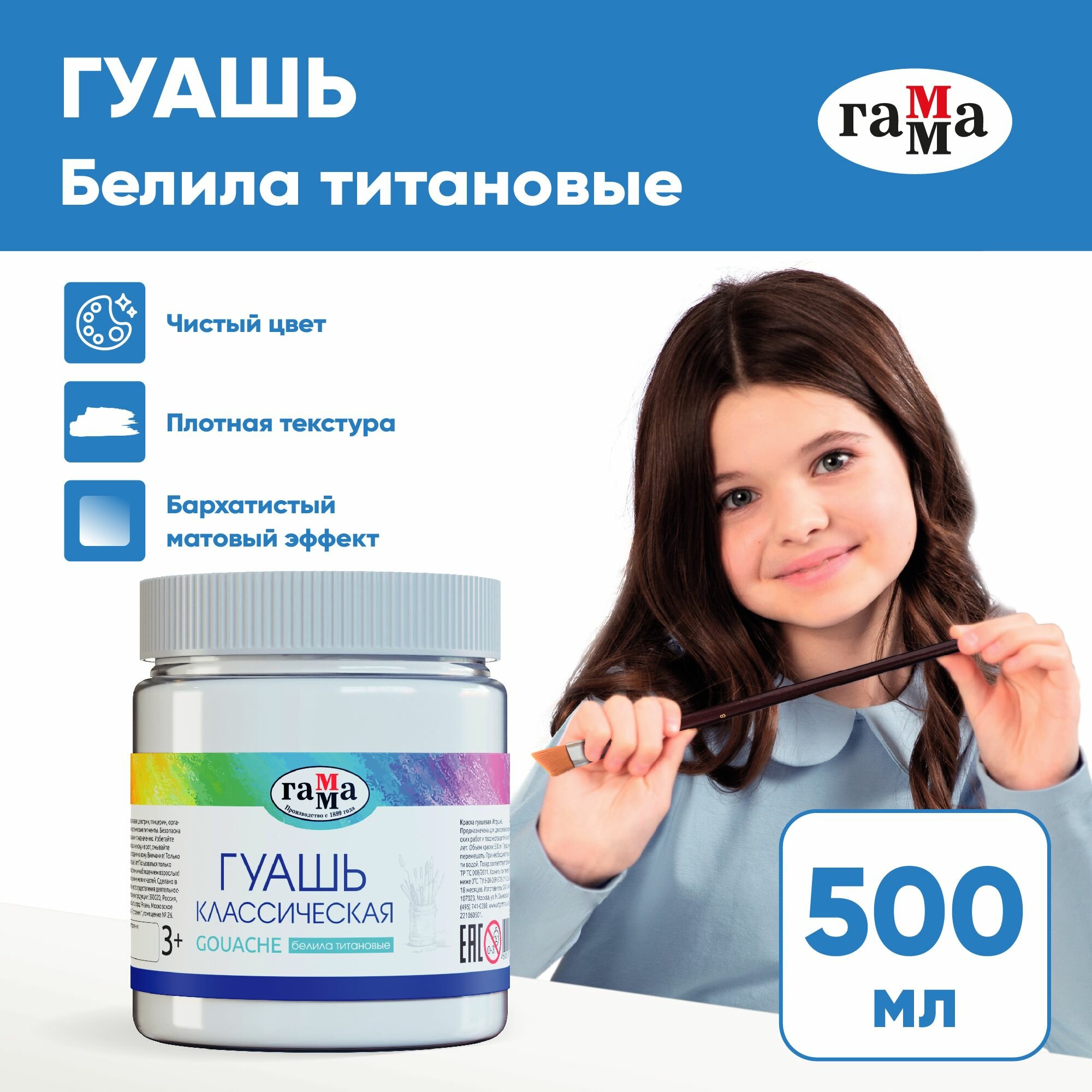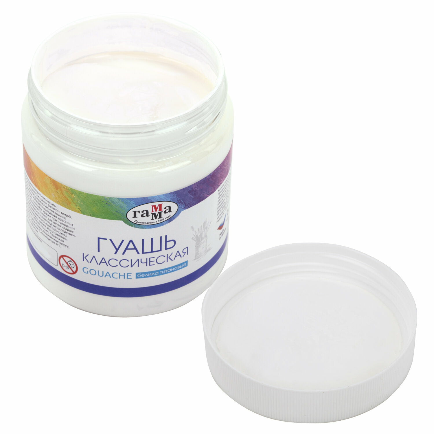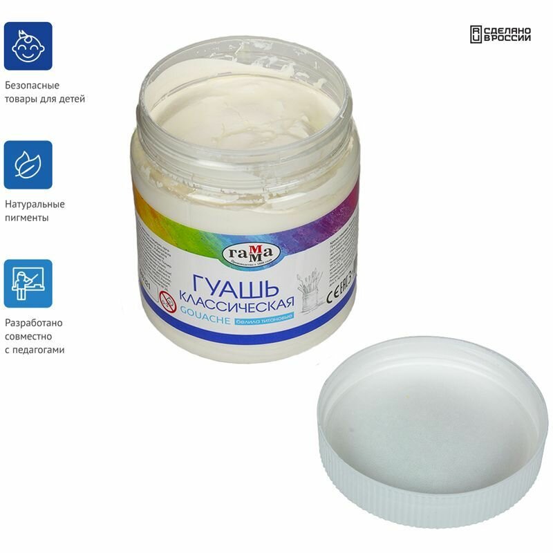Гуашь ГАММА классическая 500 мл, белила титановые, 221060501.
