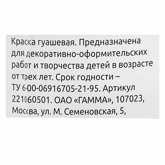Тип товара: Гуашь одноцветная