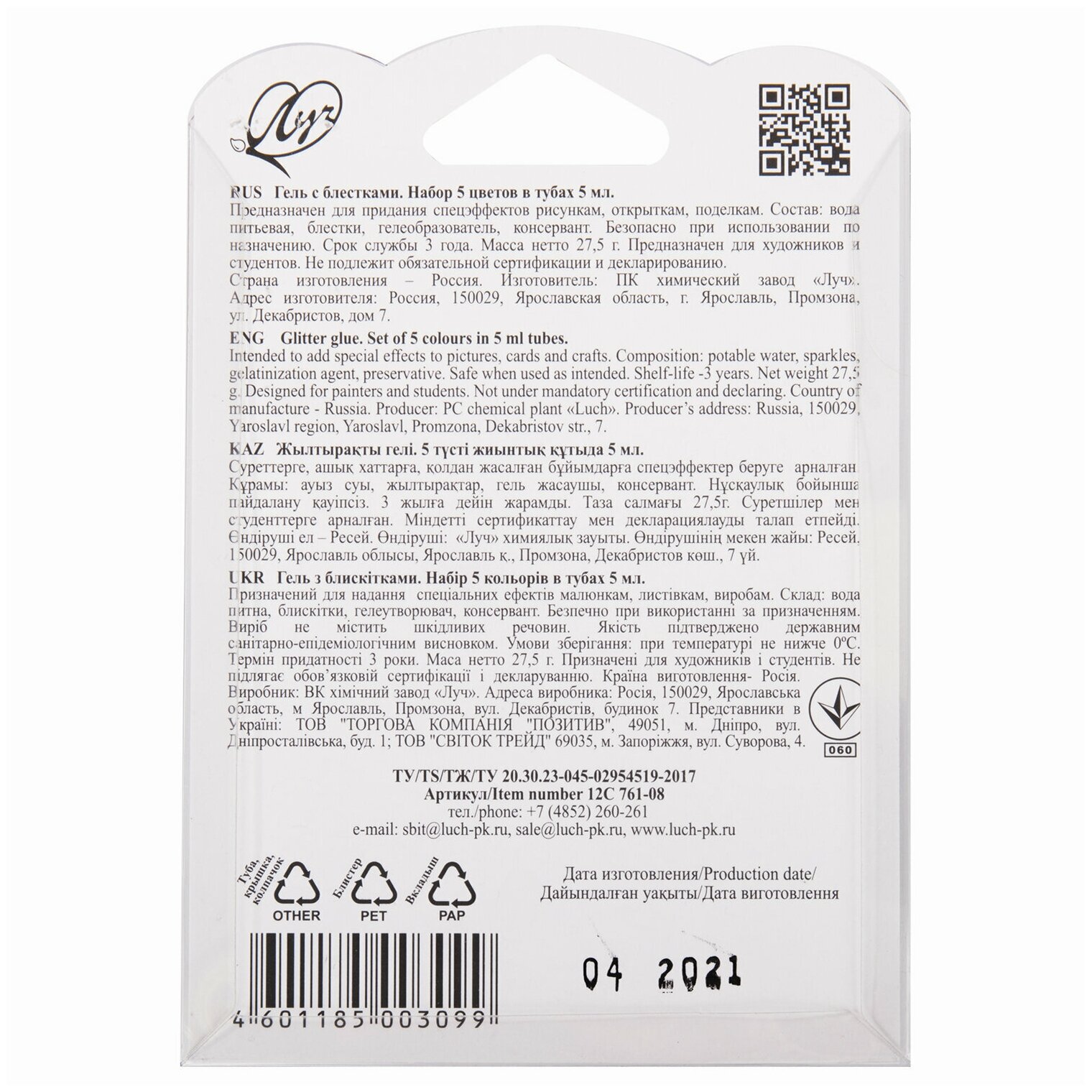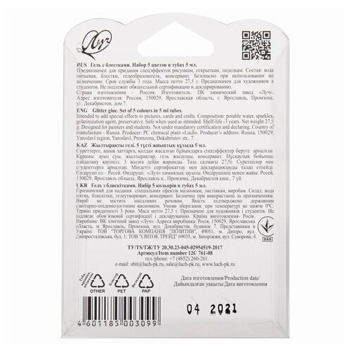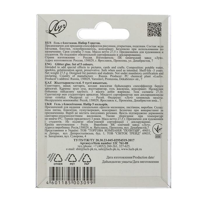 На сегодняшний день товар «Гель с блестками "Блеск" (5 цветов) (12С 761-08) ЛУЧ» можно купить с кешбеком в 1 магазине: Яндекс.Маркет