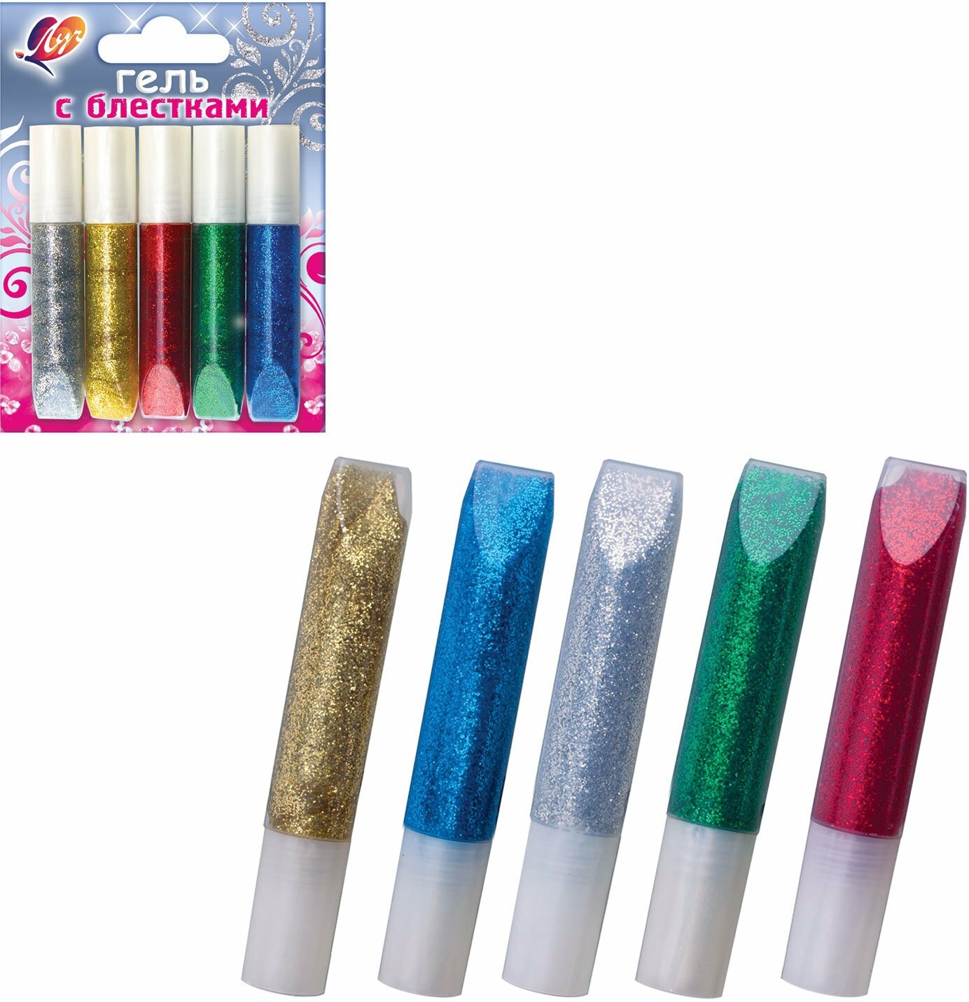 Сервис сравнения цен СкидкаГИД предлагает сравнить цены на товар «Гель с блестками "Блеск" (5 цветов) (12С 761-08) ЛУЧ»