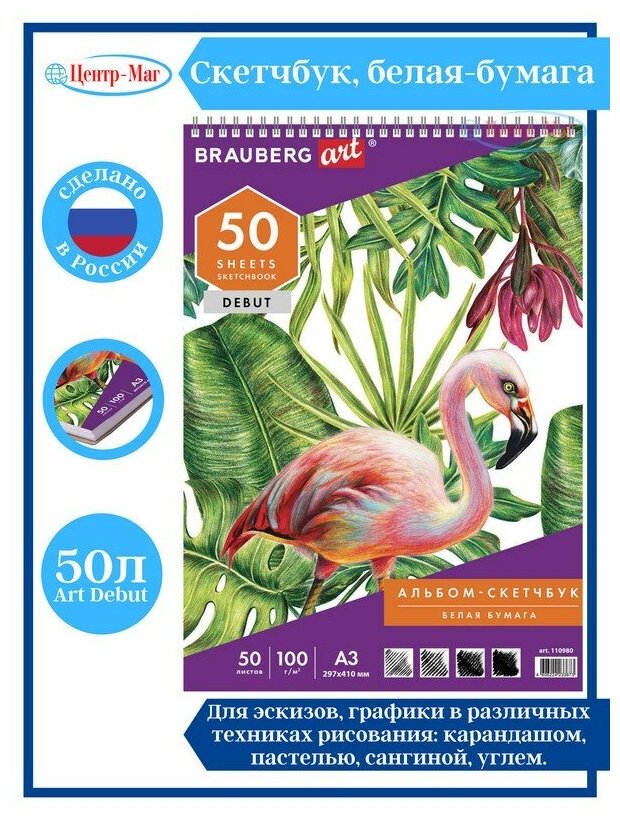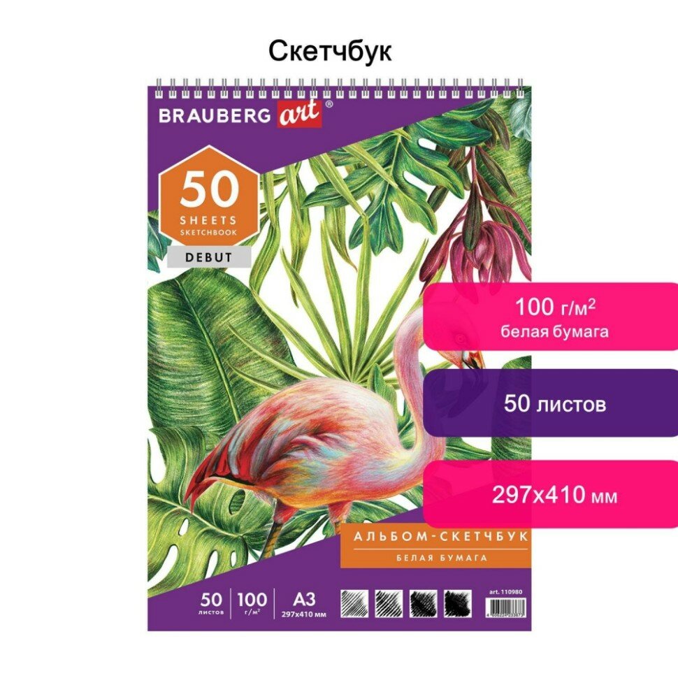 Скетчбук BRAUBERG ART «DEBUT» предназначен для эскизов, зарисовок, графики в различных техниках рисования: карандашом, пастелью, сангиной, углем. С его помощью можно набросать проект картины, проработав все детали, прежде чем начинать глобальную работу.