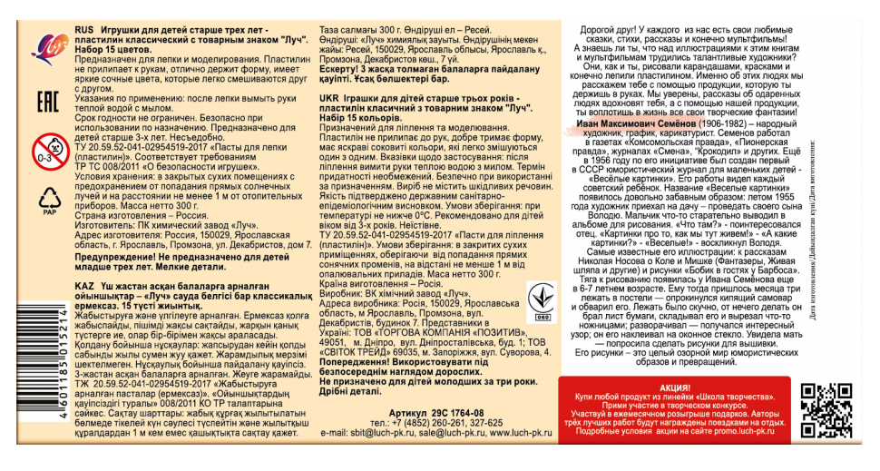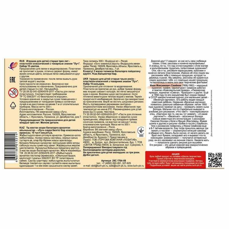Сервис сравнения цен СкидкаГИД предлагает сравнить цены на товар «Пластилин классический 15 цветов "Школа творчества" (29С 1764-08) ЛУЧ»