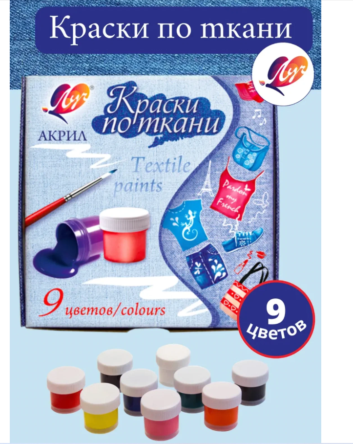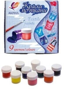 Краски акриловые по ткани 9 цветов (29С 1760-08) ЛУЧ