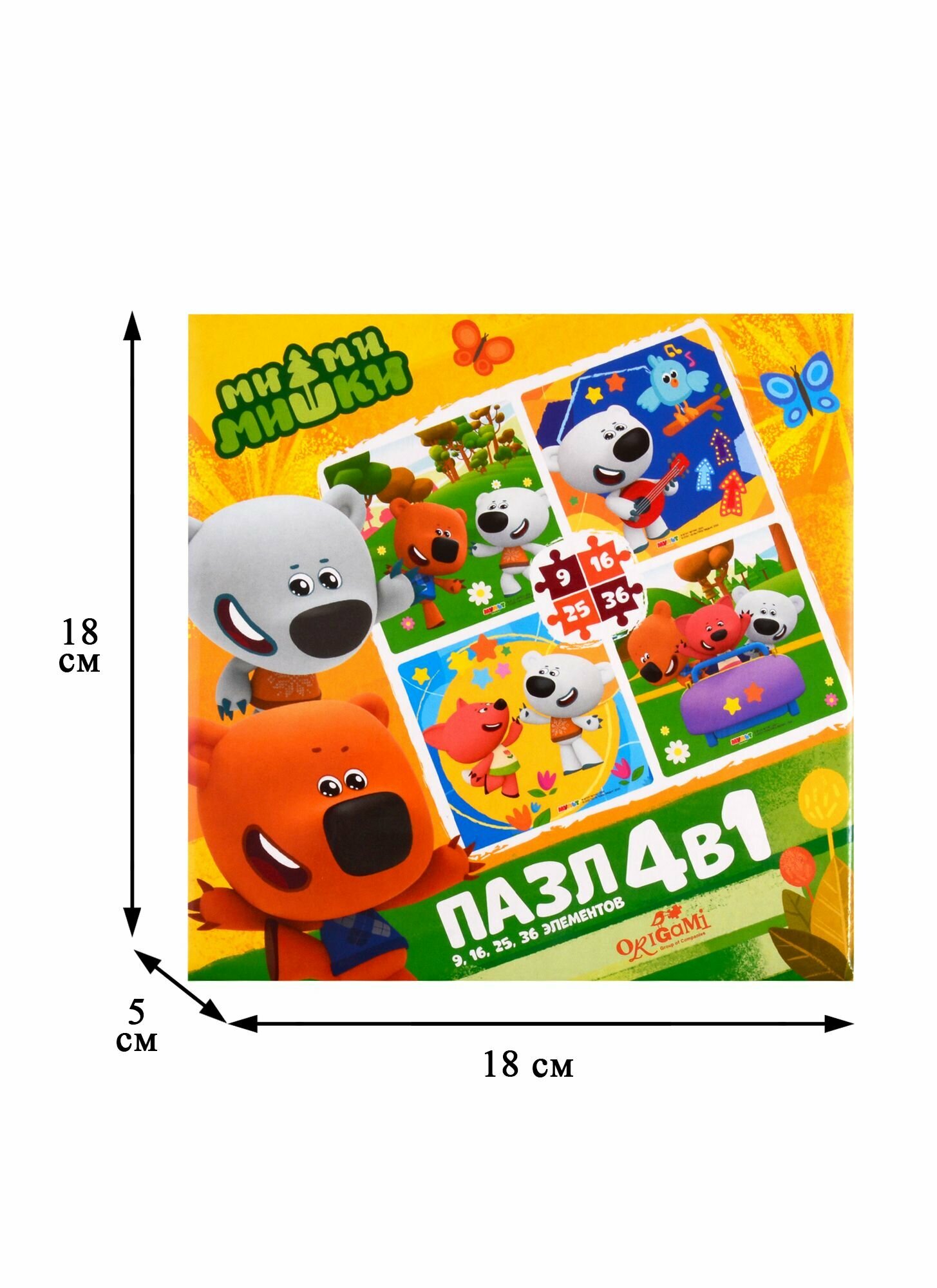 В наборе: пазлы 4 в 1 (9, 16, 25, 36 элементов).