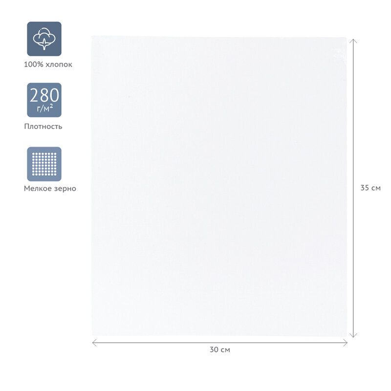 Холст покрыт акриловым грунтом, предназначен для живописи масляными, акриловыми, темперными красками. Плотность 280 г/м2.