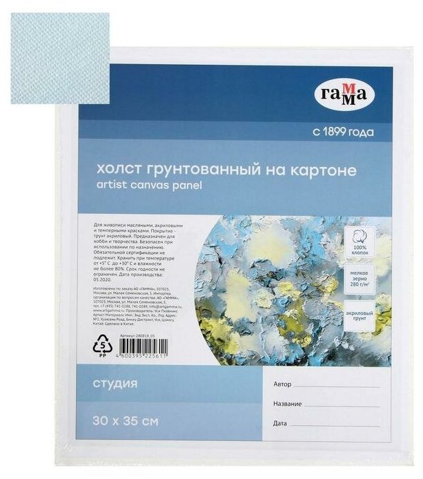 Холст на картоне Гамма "Студия", 30х35см, 100% хлопок, мелкое зерно.