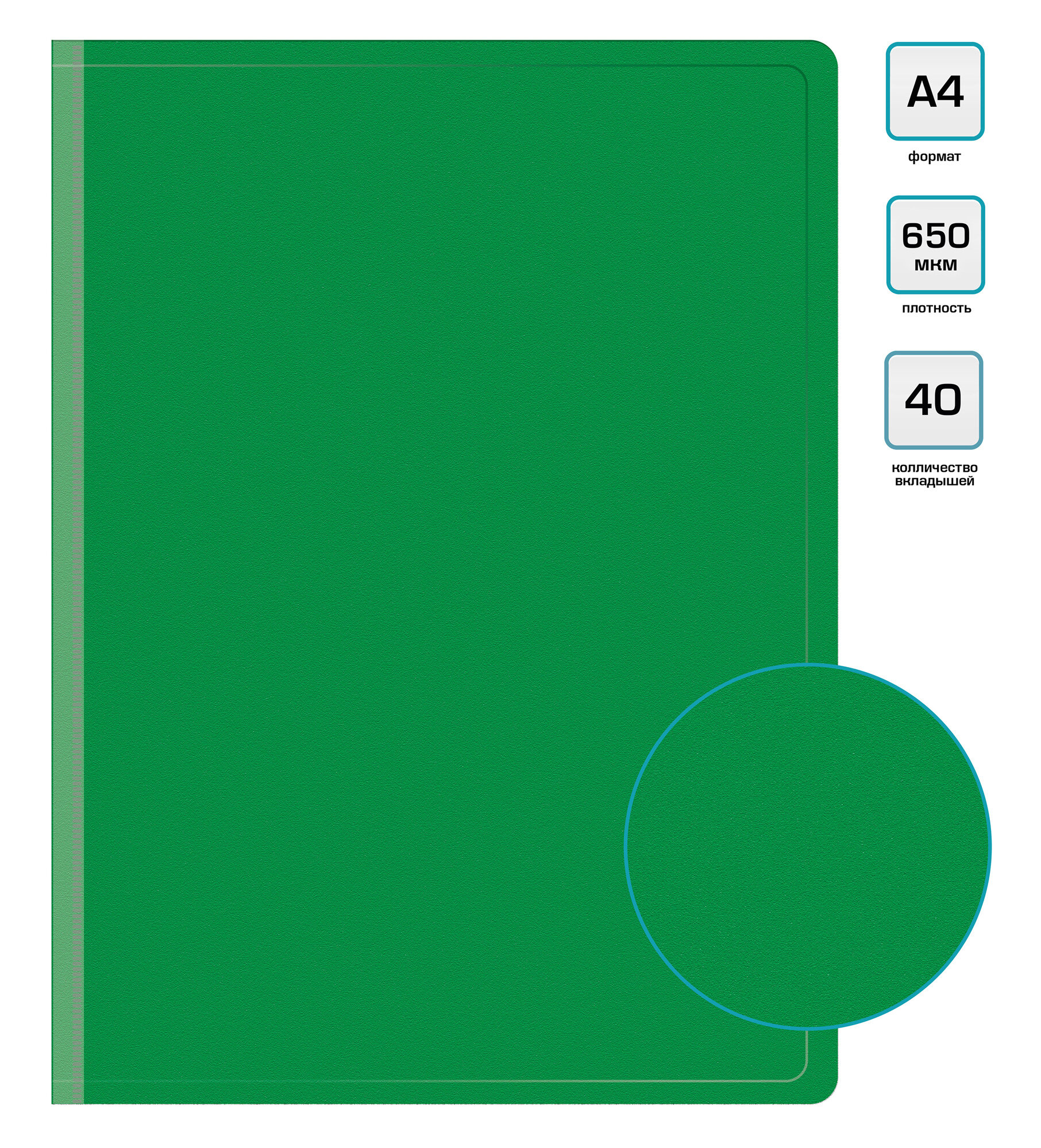 Папка с 40 прозрачными вкладышами A4 зеленая (BPV40GRN) Бюрократ
