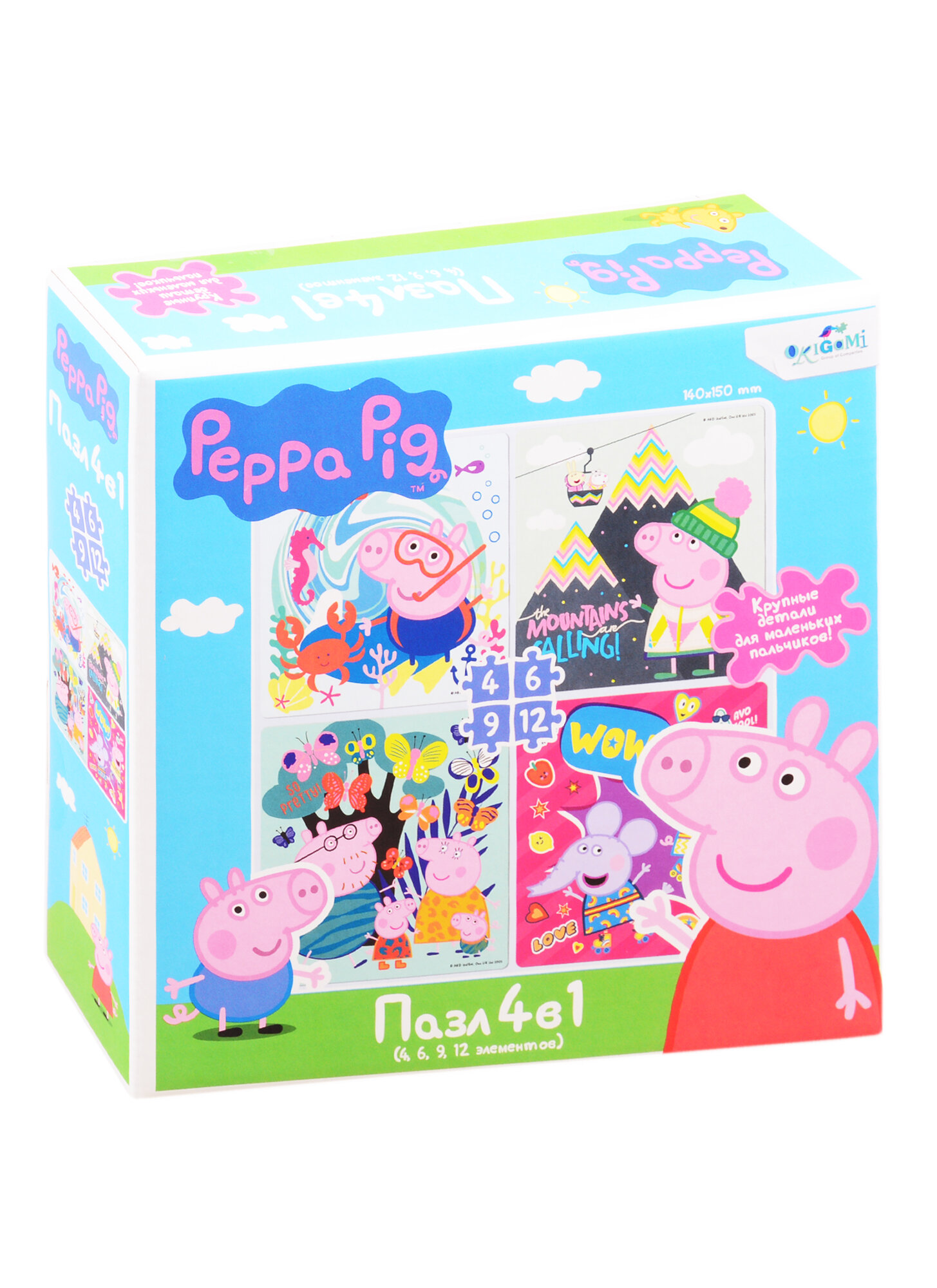 Набор пазлов 4в1 "Путешествия ждут" - это комплект пазлов с разной элементностью, включающий в себя головоломки для самых маленьких от 4 до 12 элементов, объединенных общей тематикой. Это необычная коллекция картинок с изображением героев мультфильма Свинка Пеппа, которая понравится любому ребенку. Соберите всю коллекцию и окунитесь в новое приключение! Постепенно усложняя сборку пазла от 4 элементов до 12 элементов, ребенок научится внимательности, концентрации, а также сможет развить мелкую моторику.