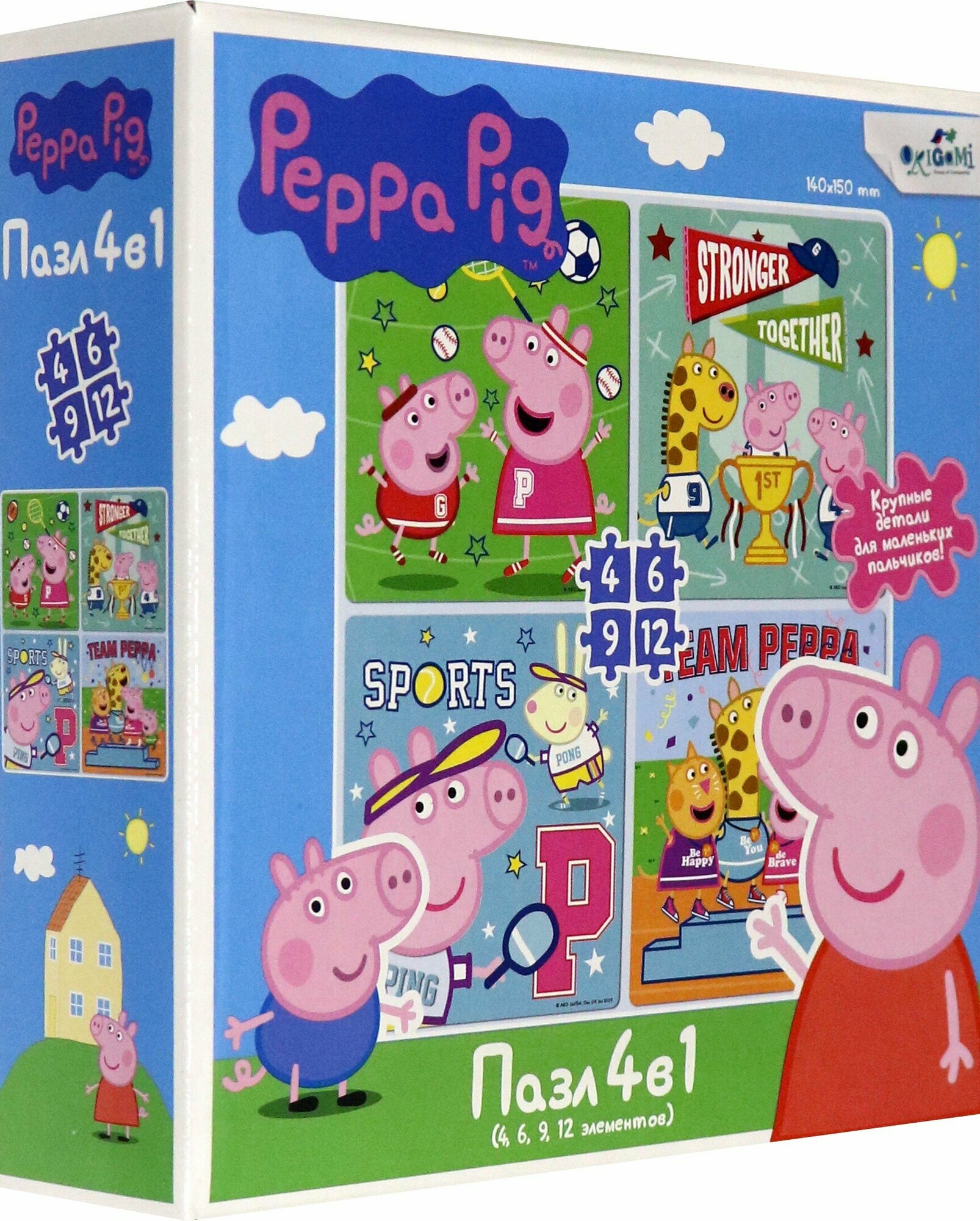 Набор пазлов 4в1 "Пеппа и спорт" - это комплект пазлов с разной элементностью, включающий в себя головоломки для самых маленьких от 4 до 12 элементов, объединенных общей тематикой. Это необычная коллекция картинок с изображением героев мультфильма Свинка Пеппа, которая понравится любому ребенку. Соберите всю коллекцию и окунитесь в новое приключение! Постепенно усложняя сборку пазла от 4 элементов до 12 элементов, ребенок научится внимательности, концентрации, а также сможет развить мелкую моторику.