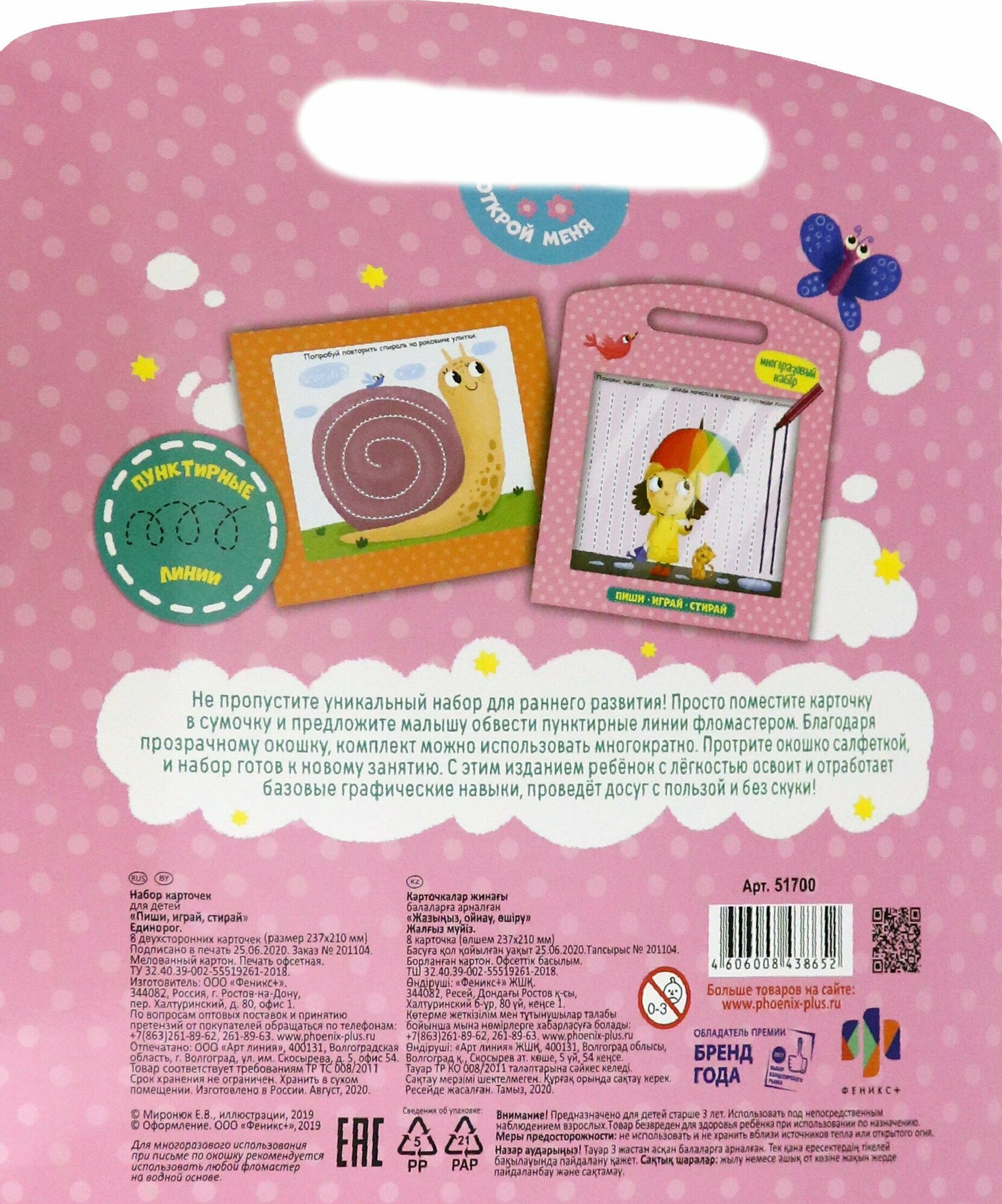 Не пропустите уникальный набор для раннего развития! Просто поместите карточку в сумочку и предложите малышу обвести пунктирные линии фломастером. Благодаря прозрачному окошку, комплект можно использовать многократно. Протрите окошко салфеткой, и набор готов к новому занятию. С этим изданием ребенок с легкостью освоит и отработает базовые графические навыки, проведет досуг с пользой и без скуки!