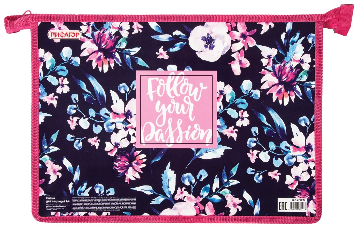 Папка для тетрадей А4 "Flowers" 1 отделение картон/пластик молния (270099) Brauberg