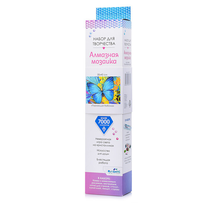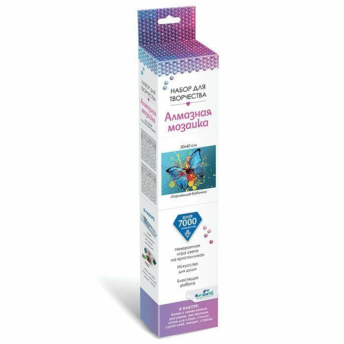| Комплектация | канва с нанесенным рисунком; инструкция; лоток для страз; стилус; сухой клей; пинцет; стразы |