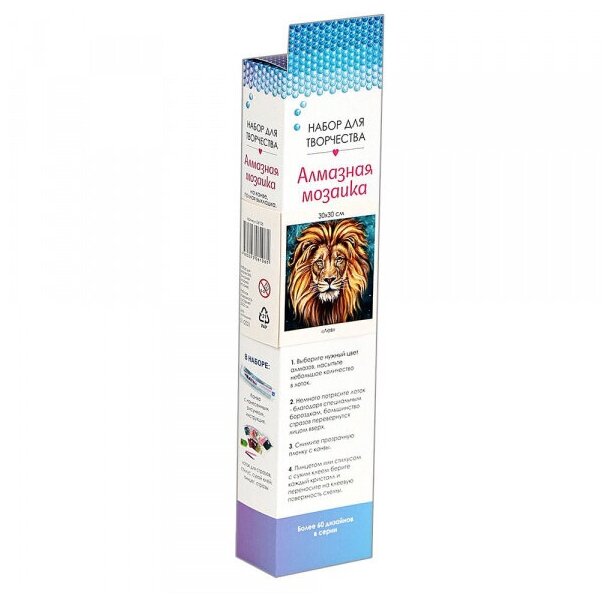 | Комплектация | канва с нанесенным рисунком - 1 шт; инструкция - 1 шт; лоток для стразов - 1 шт; стилус - 1 шт; сухой клей- 1 шт; пинцет - 1 шт; стразы |