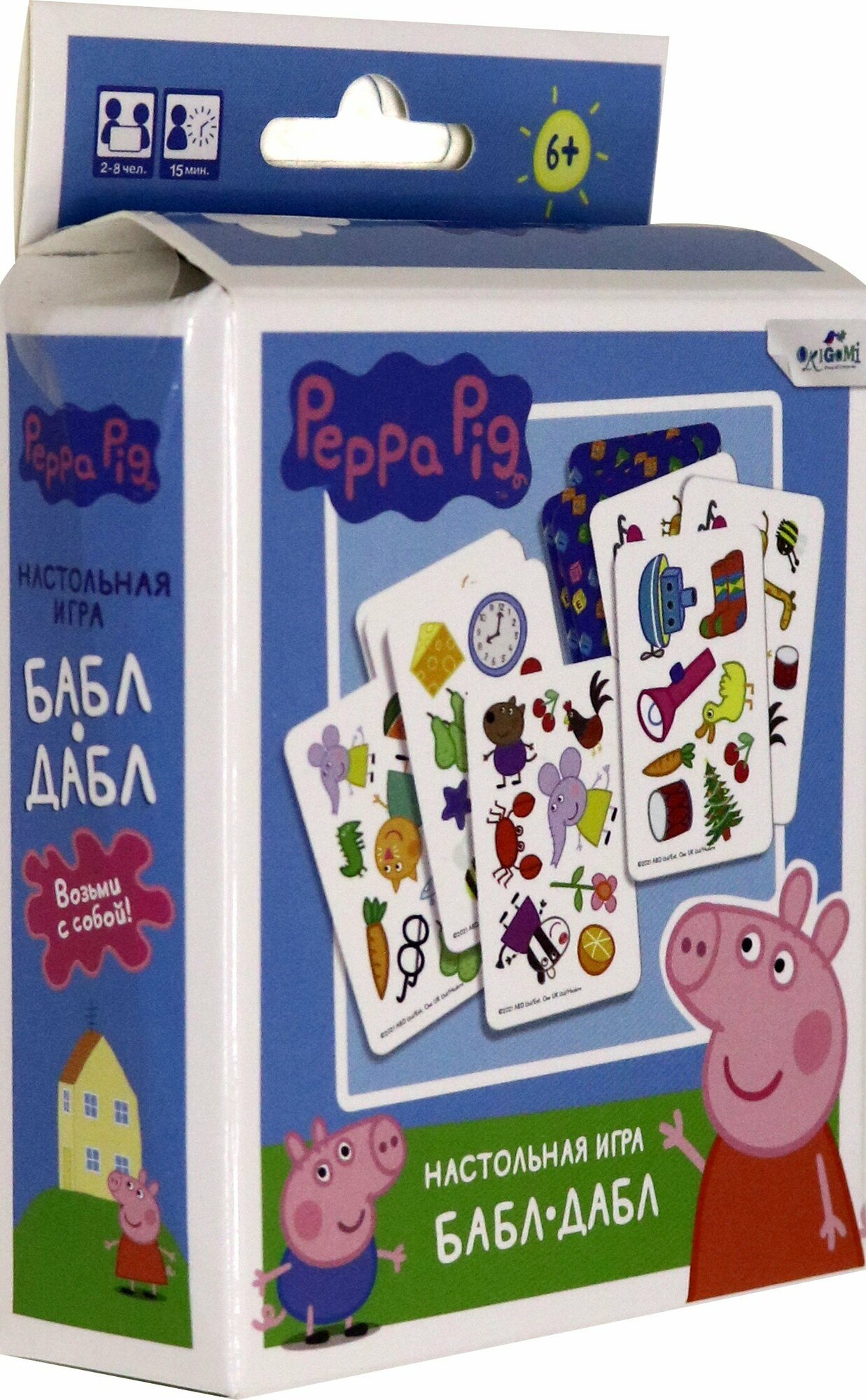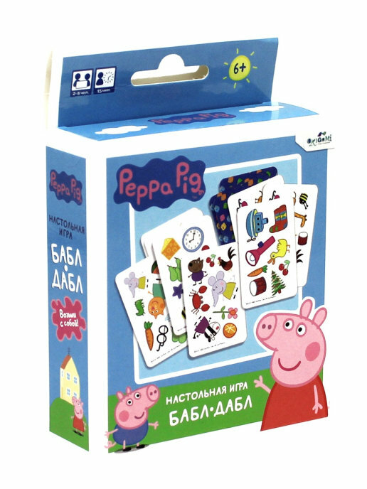 Дабл-бабл это игра на поиск и набор наибольшего количества одинаковых карт В норобке 55 карточек, выполненных в дизайне известной детской лицензии «Свинка Пеппа» – самого популярного проекта на телеканале «Карусель» по рейтингам телезрителей