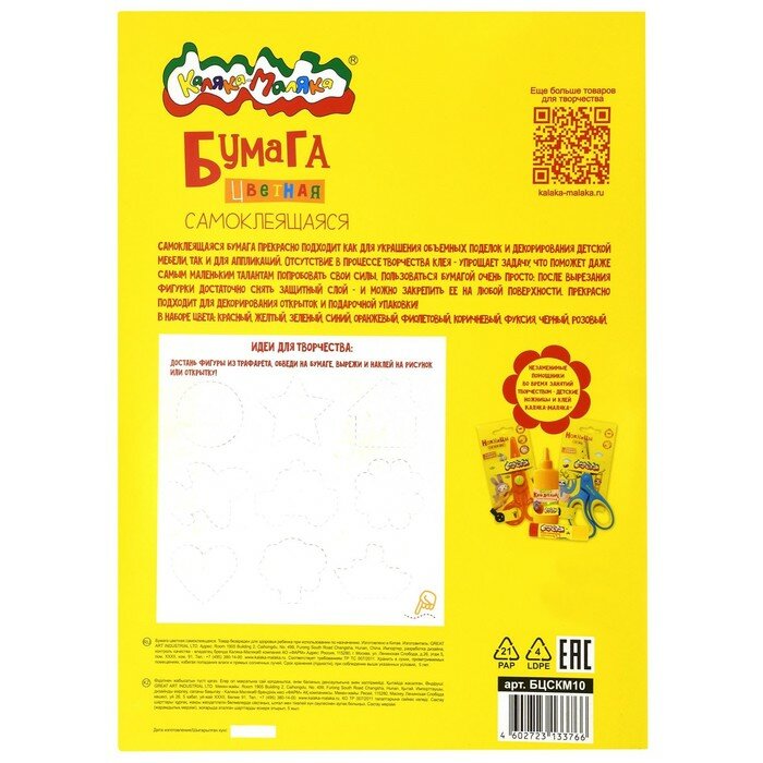 Сервис сравнения цен СкидкаГИД предлагает сравнить цены на товар «Бумага цветная самоклеящаяся 10 цветов 10 листов (БЦСКМ10) Каляка-Маляка»