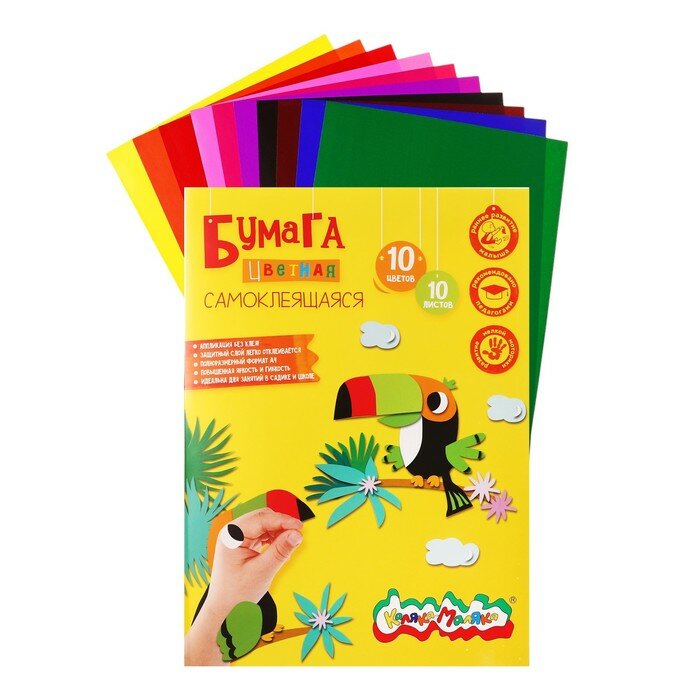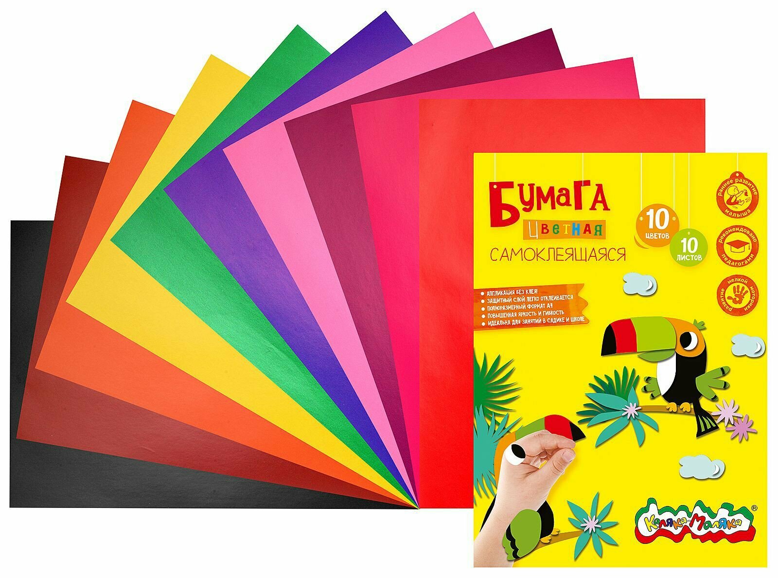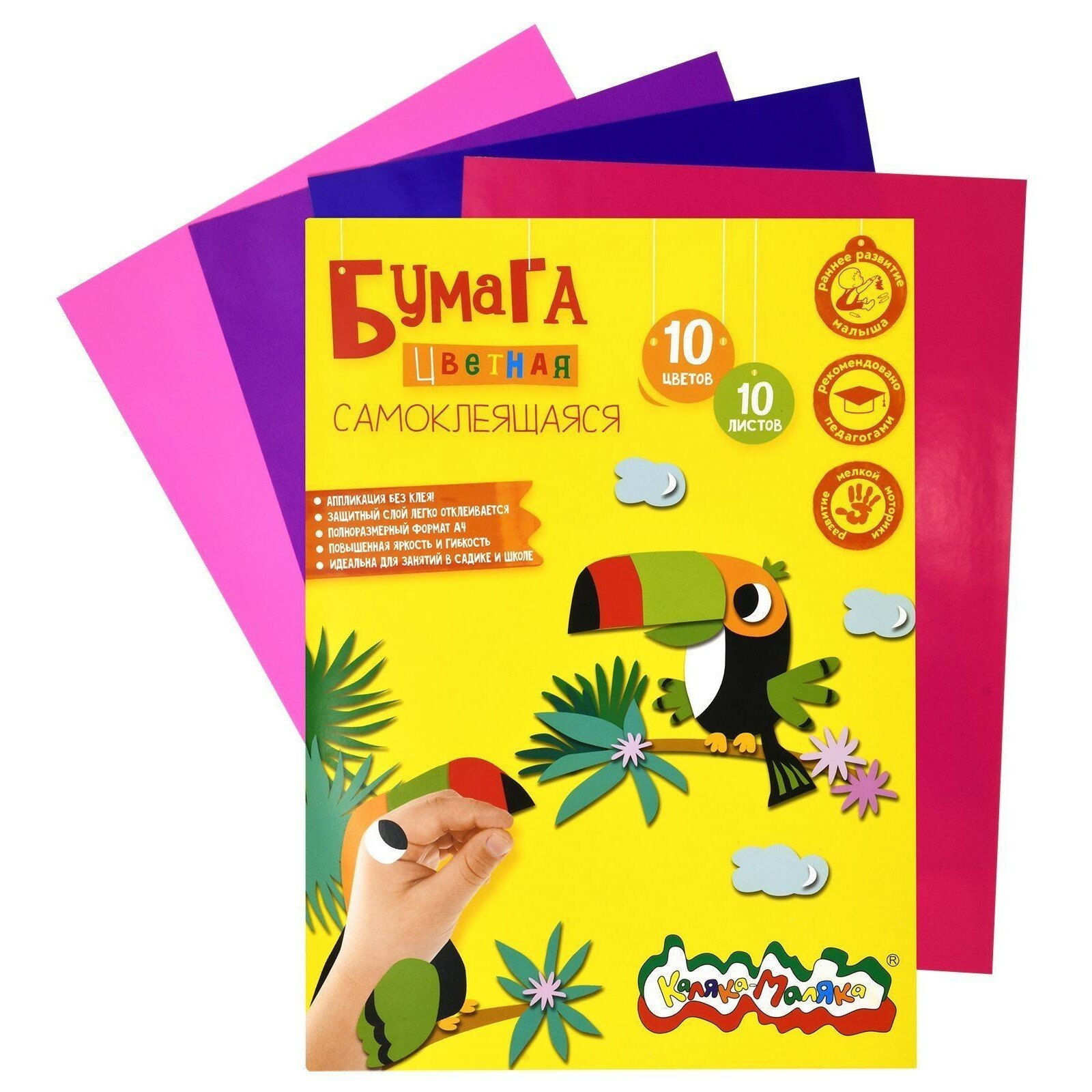 Бумага цветная самоклеящаяся 10 цветов 10 листов (БЦСКМ10) Каляка-Маляка