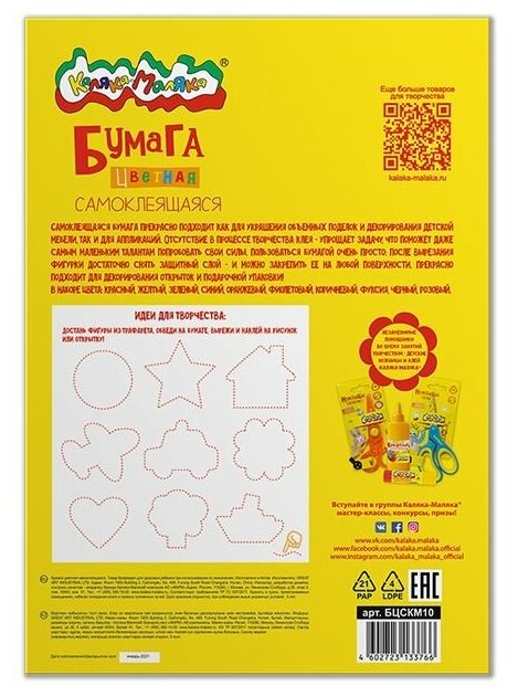 На сегодняшний день товар «Бумага цветная самоклеящаяся 10 цветов 10 листов (БЦСКМ10) Каляка-Маляка» можно купить с кешбеком в 1 магазине: Яндекс.Маркет