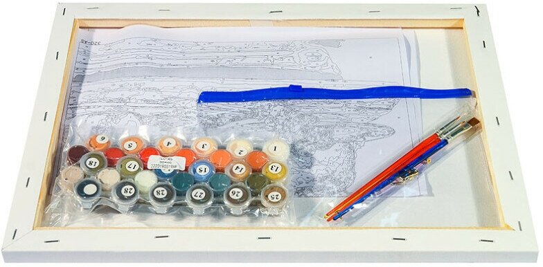| Комплектация | Холст на подрамнике, Акриловые краски, 4 кисти, Крепеж для подвешивания картины, Контрольный лист, Пакет А-5 с замком-застежкой для хранения красок. |