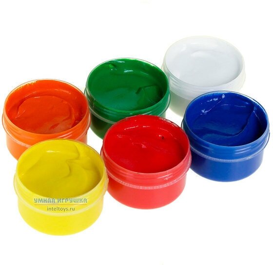 В наборе 6 цветов: красный, синий, желтый, оранжевый, зеленый, белый