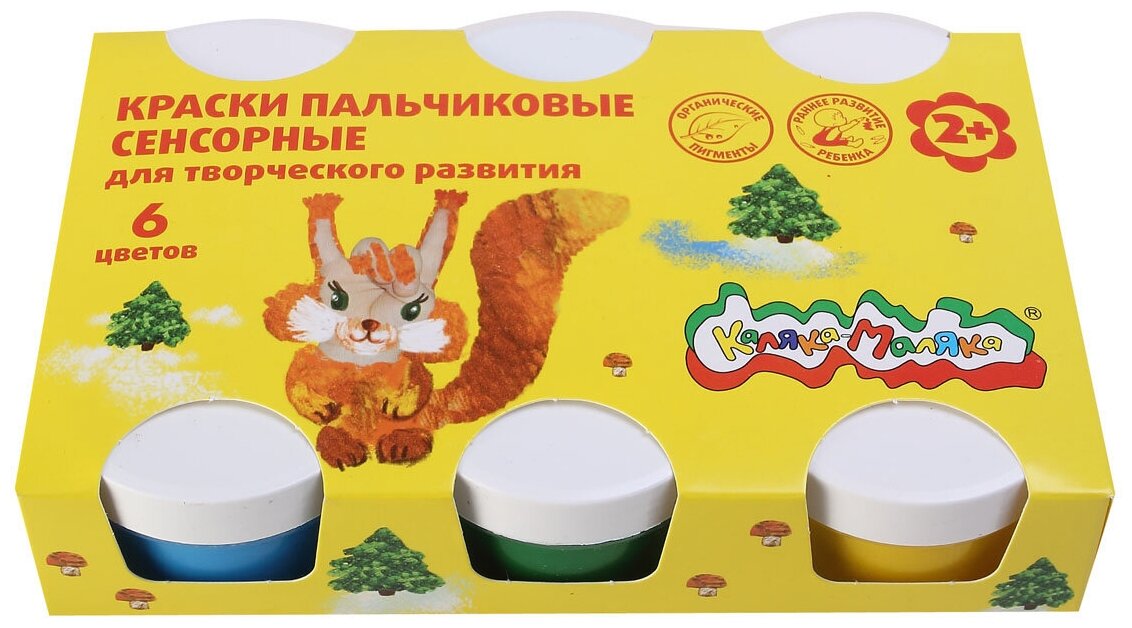 Краски пальчиковые сенсорные 6 цветов баночки 60 мл (ПКСКМ06) Каляка-Маляка