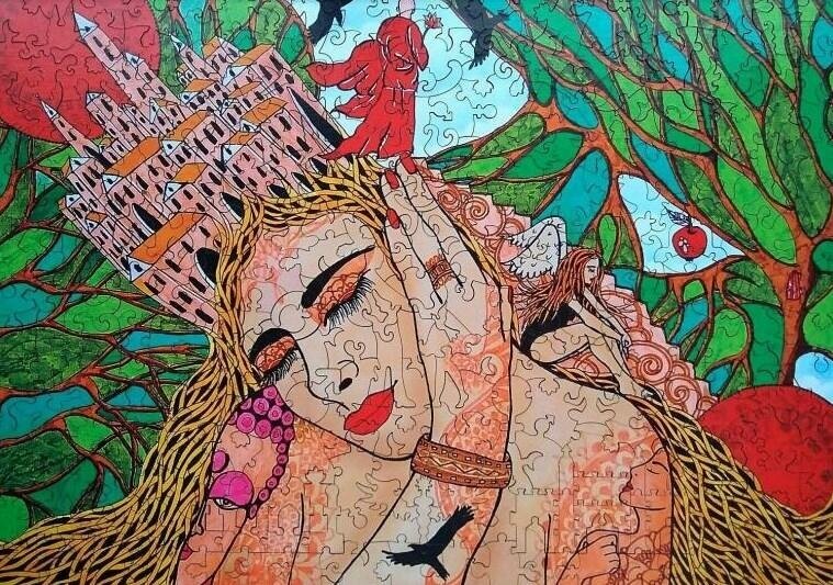 Каждый собранный пазл представляет собой рукописную картину - настоящее произведение искусства, проявляющее истории прошлого, настоящего, будущего или других миров.