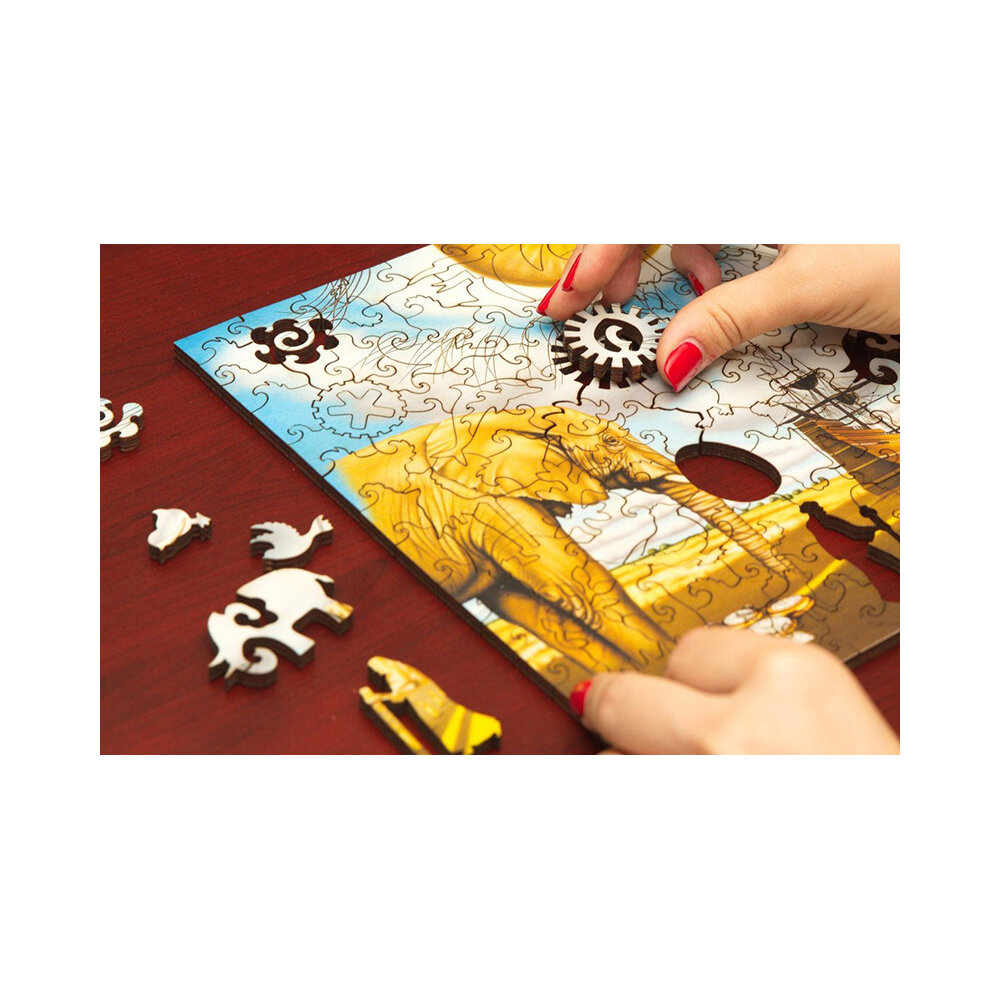 Каждая финальная фигура пазла состоит из фигур поменьше. Не из случайных типовых элементов, а именно из узнаваемых фигур. Это фигурки людей; в которых угадываются знакомые герои и персонажи художественных произведений, фигуре крепостей или домов, птиц животных... Здесь памятники старины и всемирно известные скульптуры, элементы дворянского быта и детские игрушки, снежинки и зимние забавы. Вы; берете в руки одно маленькое чудо и творите большое.