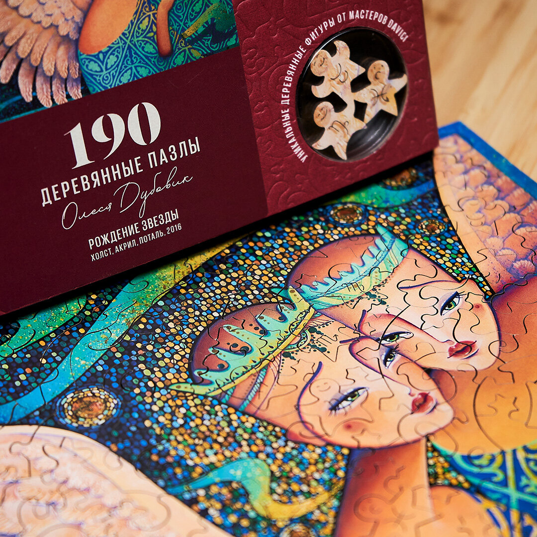 Пазлы DaVICI - это приключение вглубь ожившей картины. Коробка в ваших руках, словно книга, хранит в себе историю героев художественных произведений, сказок и сюрреалистических сюжетов, исполненных в узнаваемых деревянных деталях. Фигурки людей, птиц и зверей, королей и странников, звезд и планет оживают и сопровождают в свои удивительные уютные миры, где всегда ждут вас в гости. Картины художников, воплощенные в пазлах, предстают настоящими произведениями искусства. Приятный запах дерева заявит о реальности маленького мира в ваших руках. Вы почувствуете его сразу, открыв коробку. Тактильный восторг награждает вас с каждым щелчком соединения деталей. Погружение в миры DAVIGI вызывает детскую радость, дарит чистое удовольствие от процесса. Это как возрождение дорогих воспоминаний и пробуждение в себе того, что по-настоящему ценно.