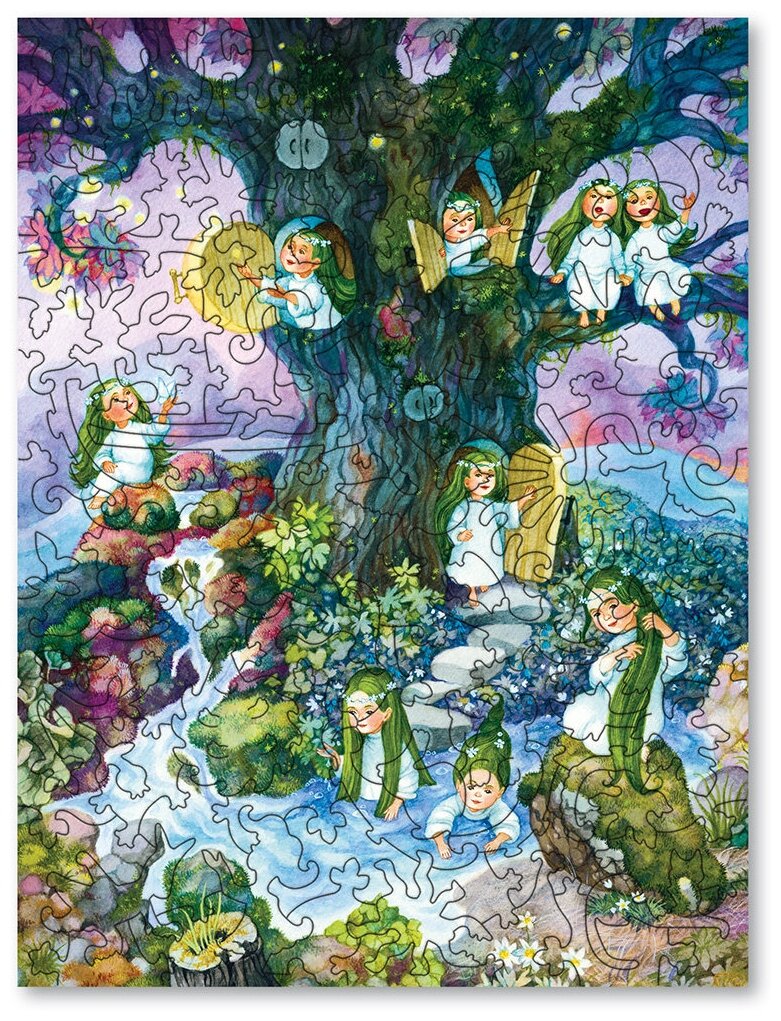 Главные герои набора - маленькие загадочные нимфы, обитающие в волшебном лесу. Каждая деталь пазла будто говорит: "Посмотри, как прекрасен окружающий мир! Красота - вокруг нас, и это надо ценить". Детали складываются как по нотам, переплетаясь в единую мелодию весны.