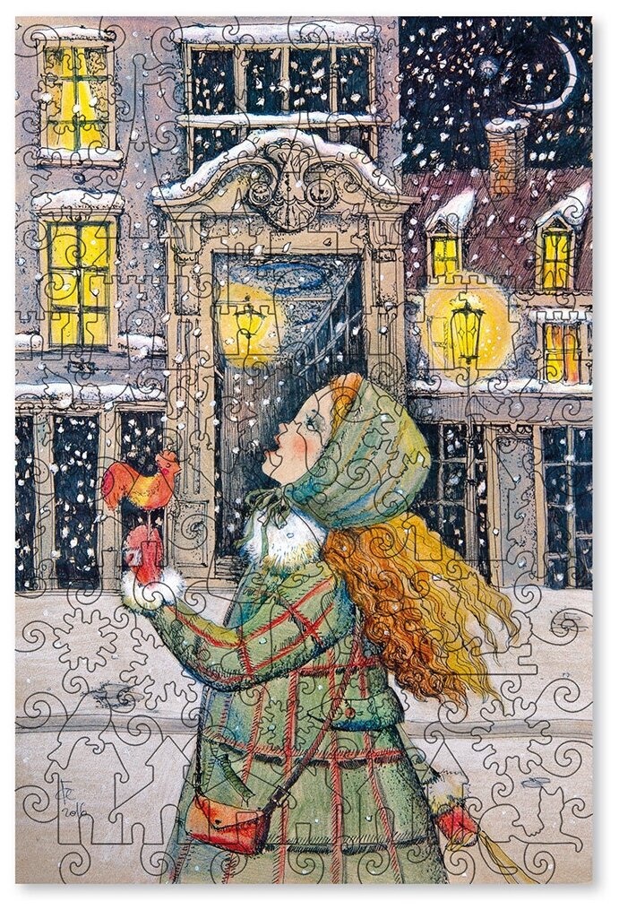 В преддверии Нового года снег становится не только вкусным, но и волшебным. Съедаешь снежинку - и происходит превращение. Только собрав картину, можно увидеть волшебство превращения девочки-героини.