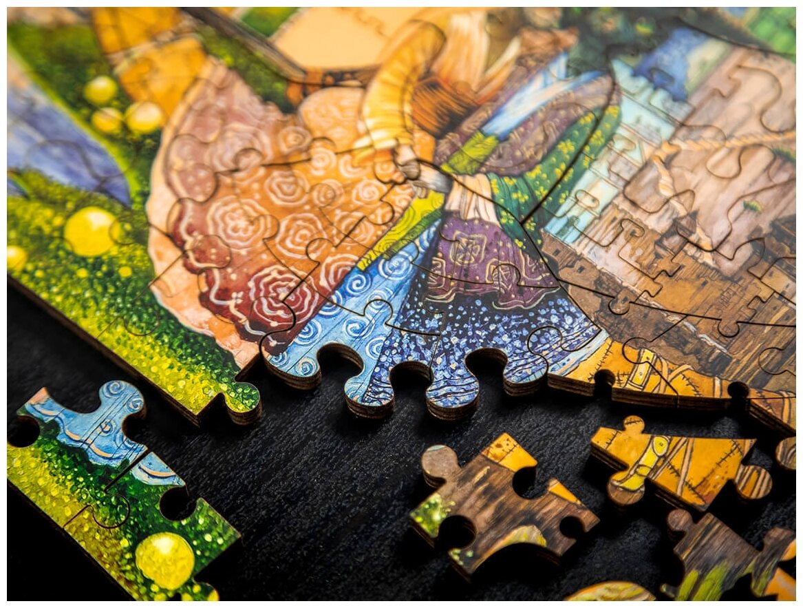 Семейная идиллия проплывает в безграничном мире сновидений. Ах, если бы удалось воссоздать всё, что снится!.. Художникам удалось запечатлеть в деталях-пазлах хрупкую паутинку сна, придав ей черты реальности. И картина эта - как чудное пирожное: сложил - и потом еще долго вкусно!