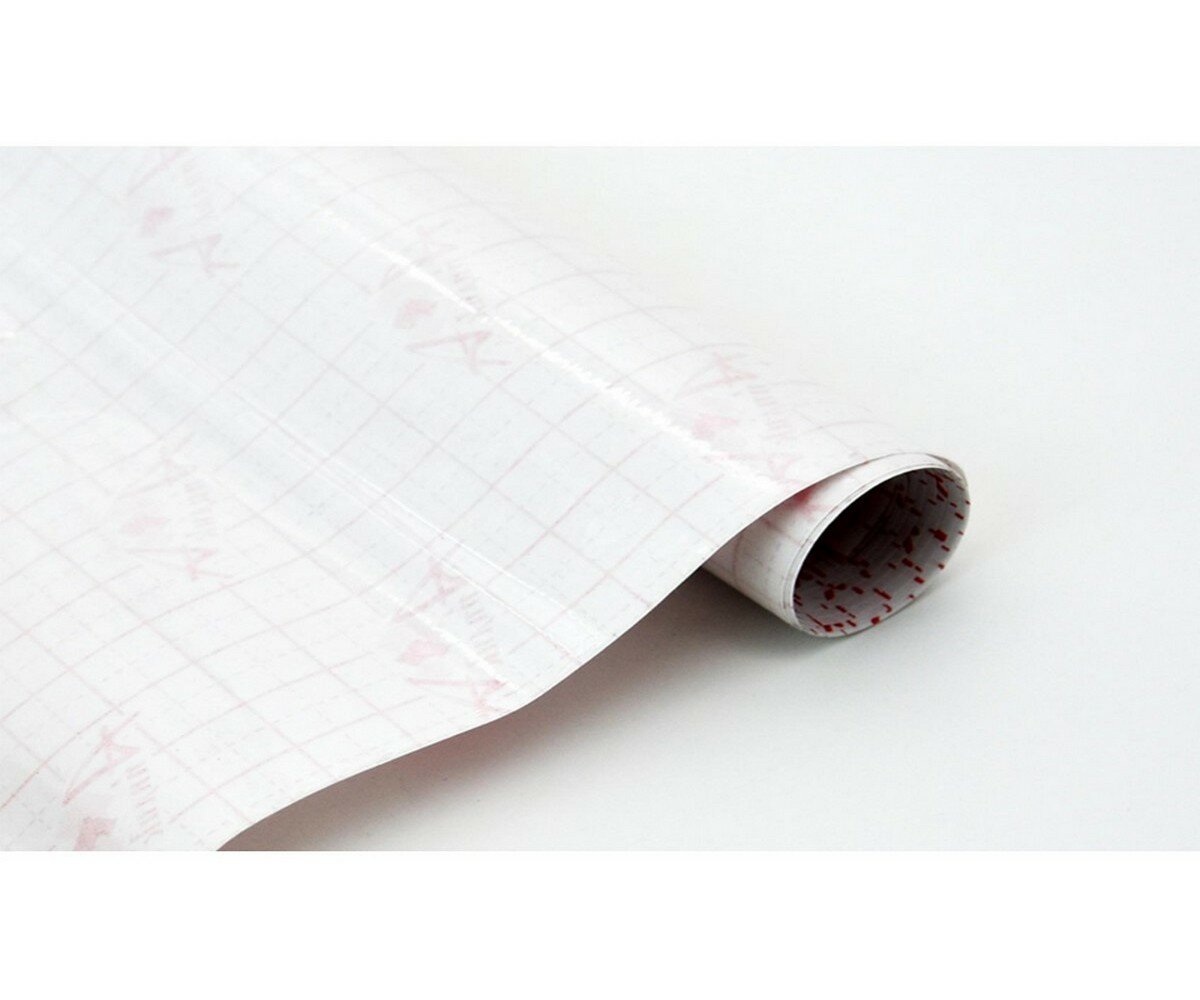Самоклеящаяся пленка продублирована разлинованной бумагой ( которую, кстати, тоже можно использовать) для ориентира при разрезе.