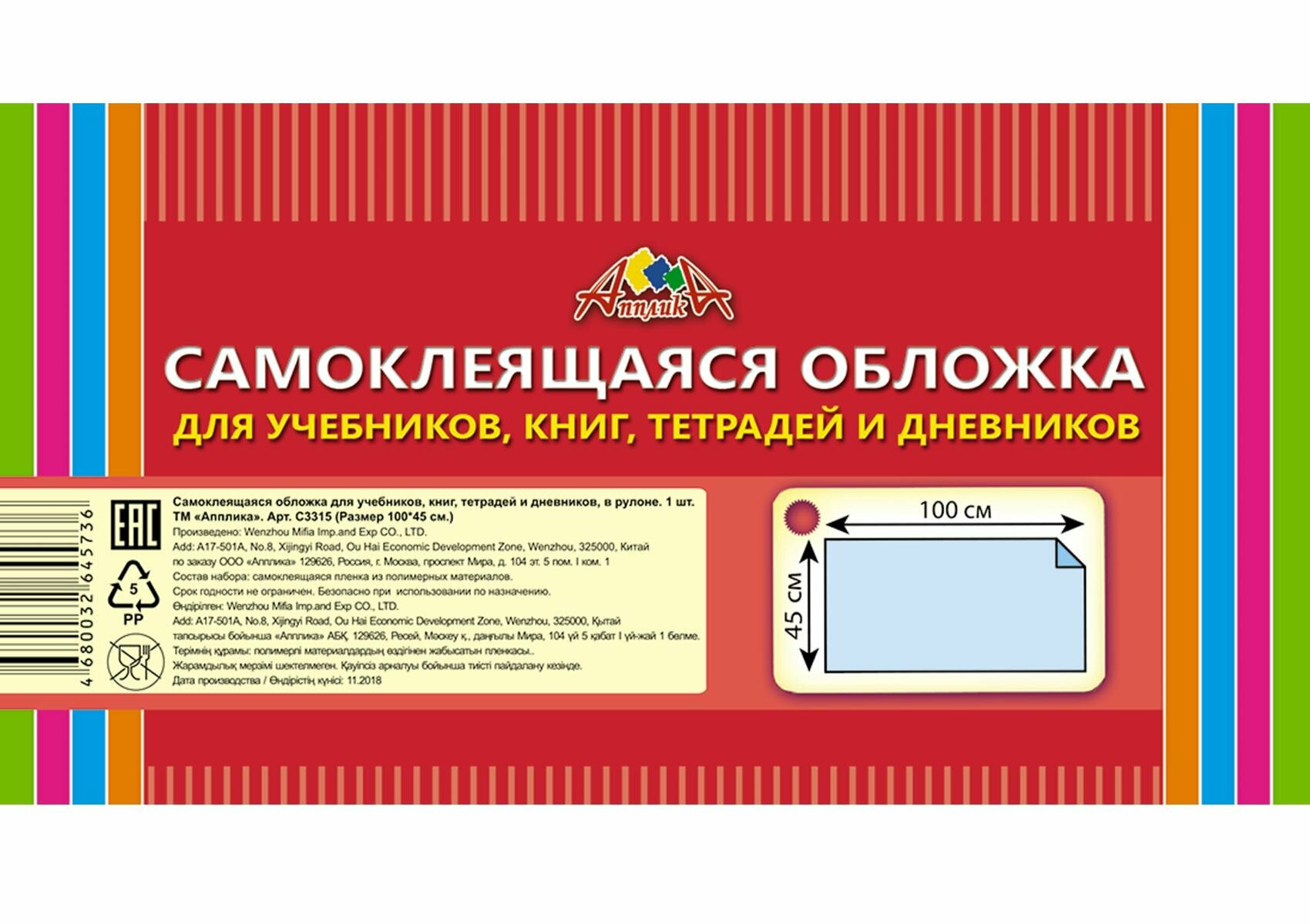 Обложка самоклеящаяся для учебников книг тетрадей и дневников (45х100 см рулон) (С3315) АппликА