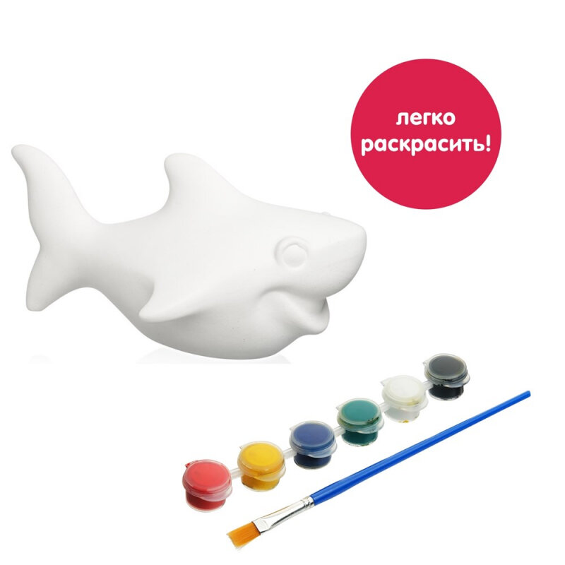Акула - любимый детский персонаж! А эту акулу можно еще и раскрасить так, как захочется! В наборе для творчества "Акула" вы найдете все необходимое, чтобы превратить заготовку из керамики в произведение искусства. Возьмите краски, кисточку и придумайте уникальный узор. Готовую фигуру можно использовать как украшение интерьера.