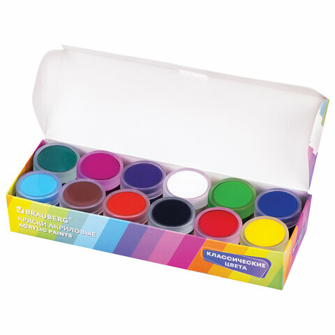 Краски акриловые 12 цветов 20 мл (191602) Brauberg