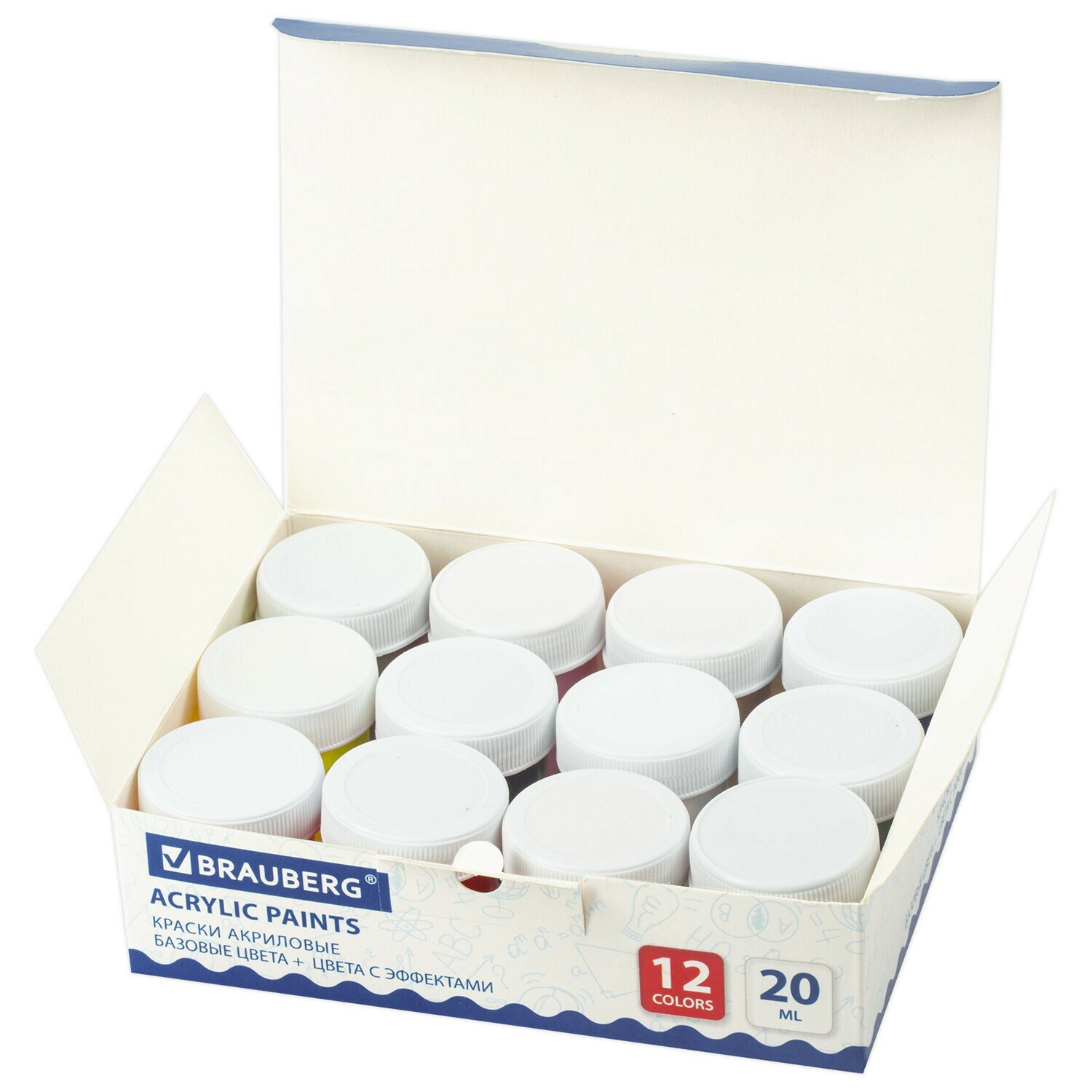 Краски акриловые 12 цветов 20 мл (6 базовые + 6 с эффектами) (191607) Brauberg