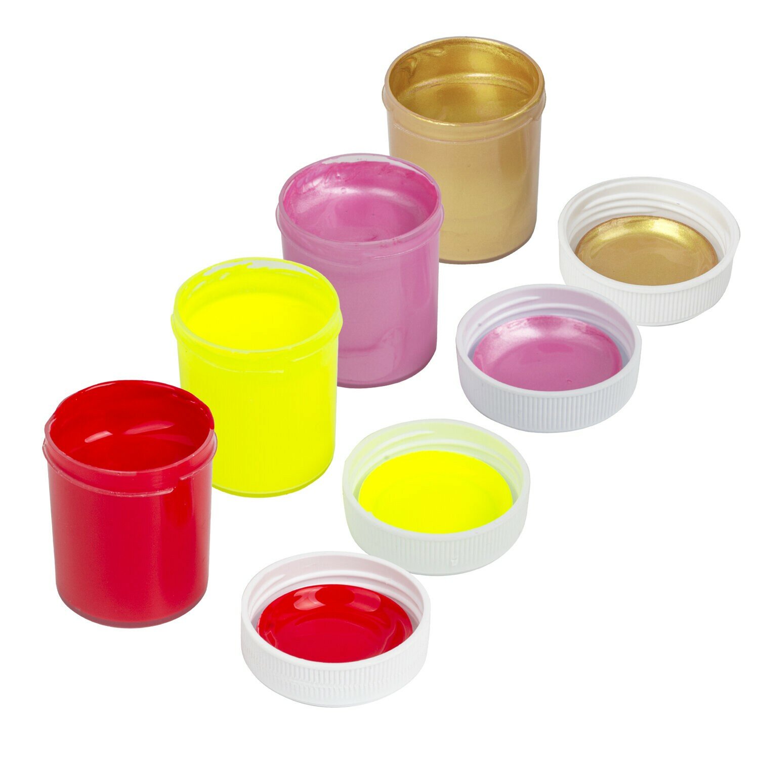 Разбавляются водой (не больше 10% от объема баночки). Обладают высокой кроющей способностью. 6 ярких и насыщенных цветов: голубой, желтый, зеленый, красный, белый, черный и 6 цветов со спецэффектами: «золото», «серебро», неоновый лимонный, неоновый оранжевый, перламутровый розовый и перламутровый фиолетовый. Спецэффекты придадут изделию завершающий штрих и расставят акценты.