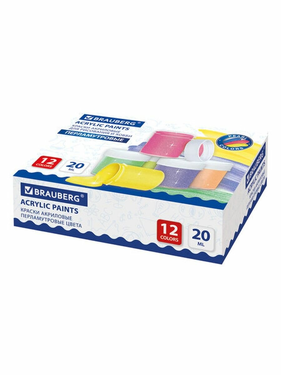 Краски акриловые 12 цветов 20 мл перламутровые (191604) Brauberg